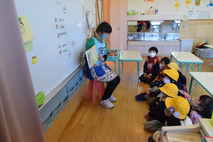 昨日は先生読み聞かせ。担任の先生以外の先生が輪番で絵本を読み聞かせに行きます。