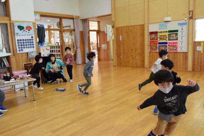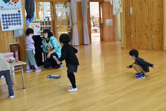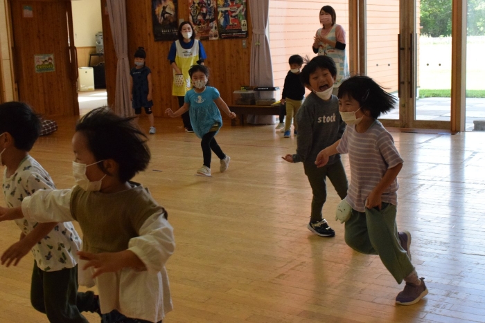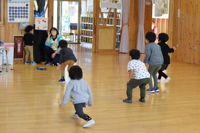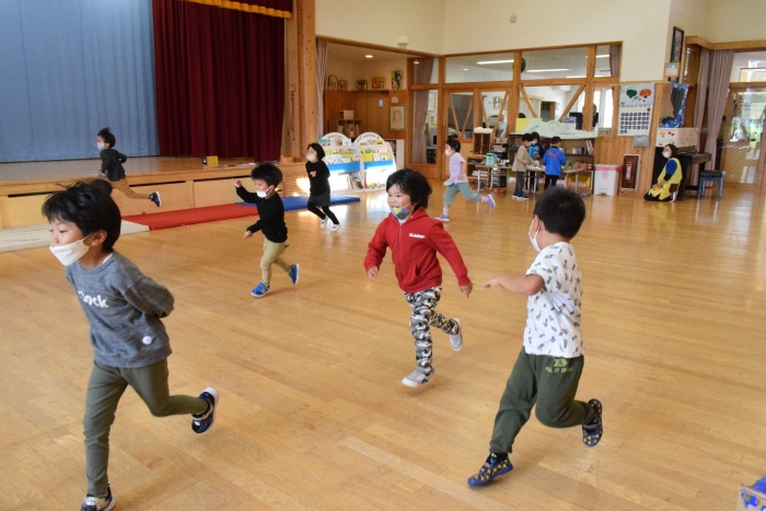 朝の遊びでは、昨日マシュー先生に教えてもらった『グリーンライト、レッドライト』が楽しかったようでみんなで始まっていました。子どもの好きな遊びは世界共通ですね!