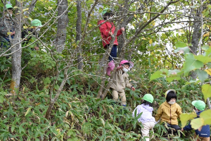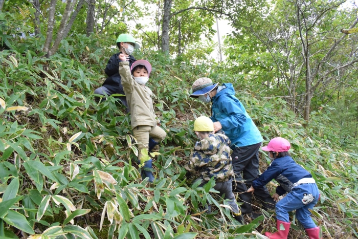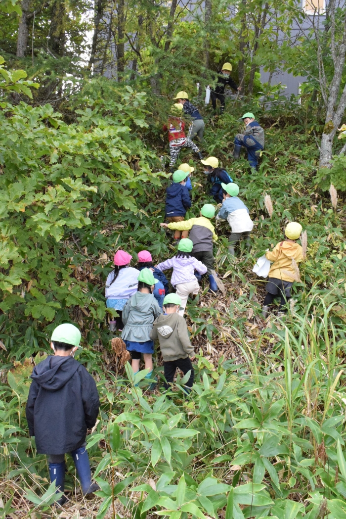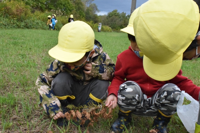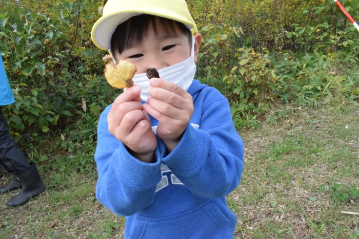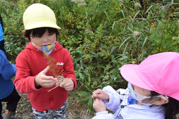 ひと雨ごとに寒さが増して気づけば秋まっさかり!今日はみんなで秋探し。お目当てはドングリ。でも今年は不作なのかリスに食べられてるのか、なかなか大きいのが見つかりませんでした。それでもススキや赤くなった葉っぱやまつぼっくりなどを見つけて自分の収集袋に入れて持って帰りましたよ(*^^*)
