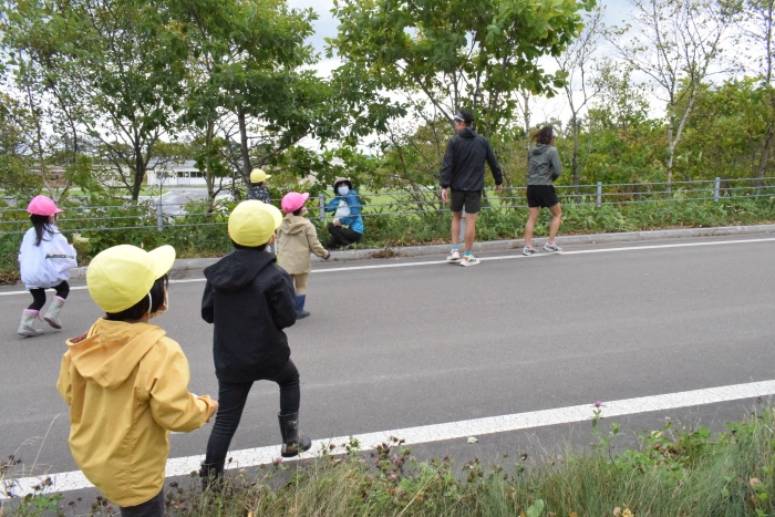 「はい、これあげる!」この後みんなも幼稚園までマラソンしました(*^^*)