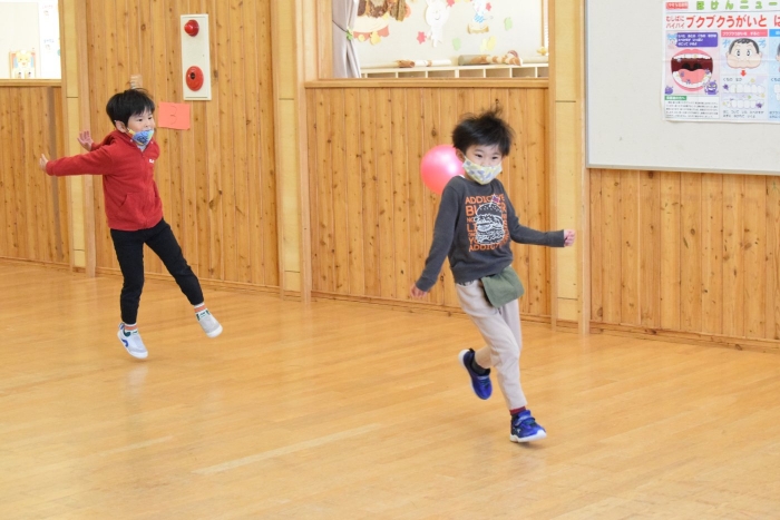 今日の朝の遊びでも『かたき』で大盛り上がり。先生の本気のボールを当てられて闘志メラメラ( ;∀;) 逃げるのも当てるのも容赦はありません(>_<) 先生に勝つためには・・・と子ども同士で協力し合う場面も出て来て、パスも上手になってきました。本気同士の戦いで学ぶものは・・・。