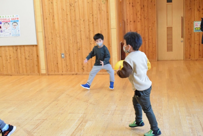 今日も登園するとすぐに『かたき』が始まり次々仲間入り。はじめのうちは先生をめがけていましたが、先生も本気モード、仕返しが怖くて( ;∀;)