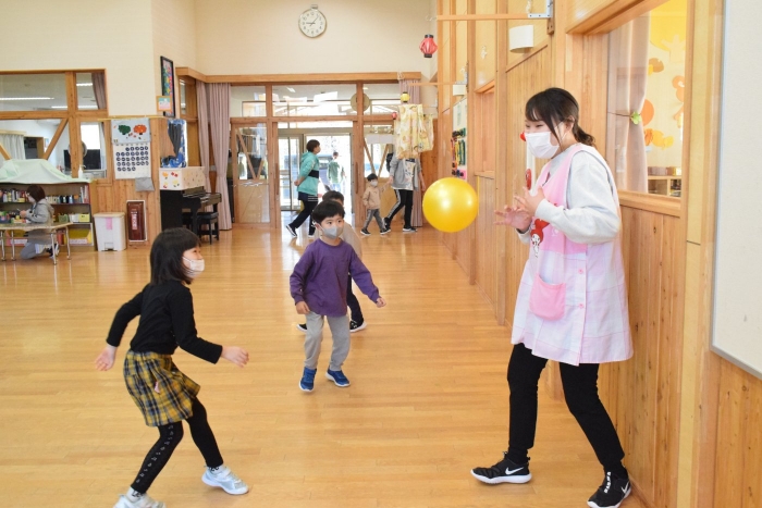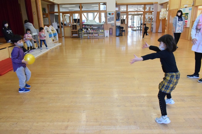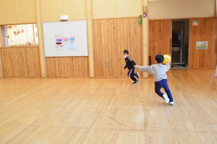 今日は大事をとる家庭が多く15名欠席で8名の出席でした。登園していた子たちはみんな元気で少ない人数でも『かたき』でプレイルームを走り回っていましたよ。