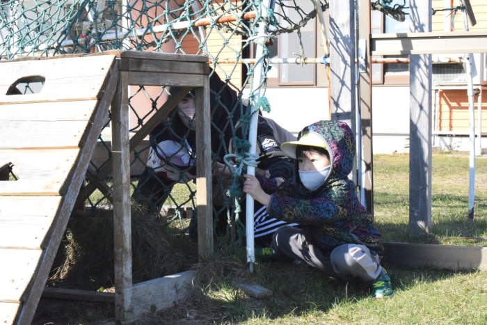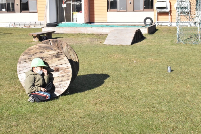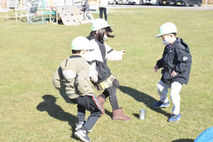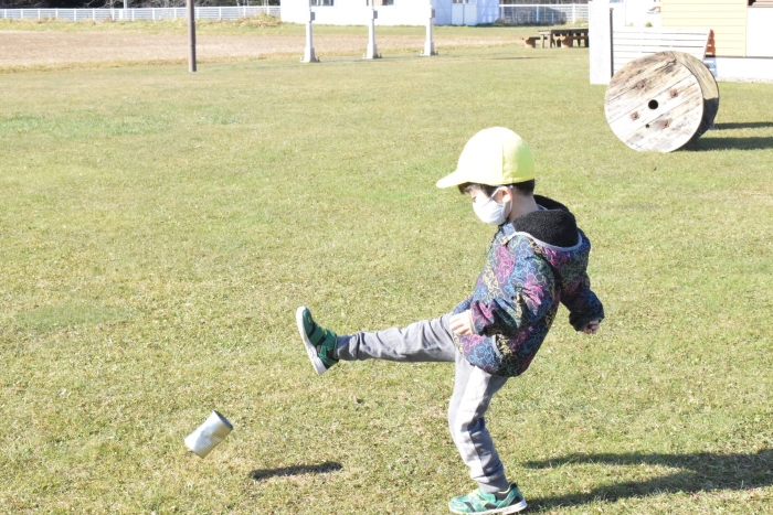 外では缶蹴りが。走ると体もポッカポカ(^_-)-☆