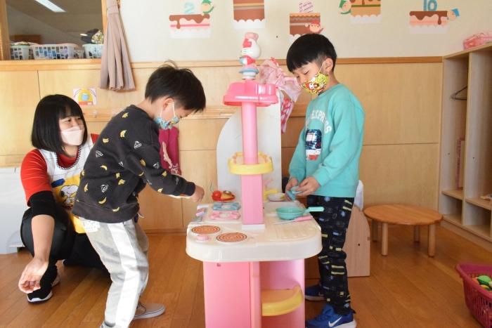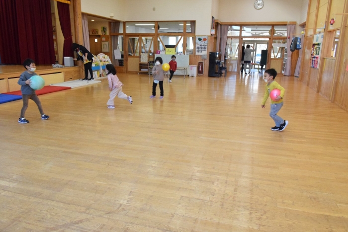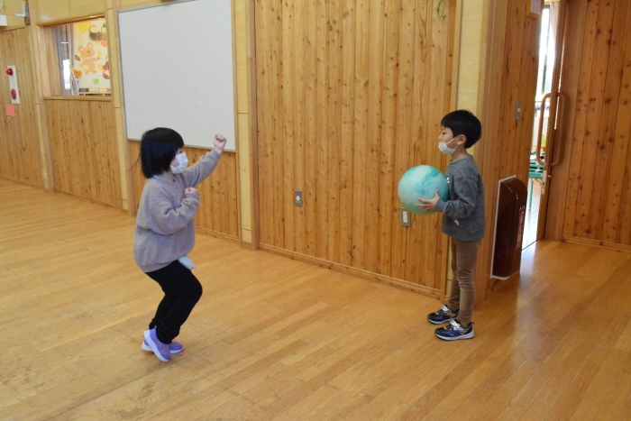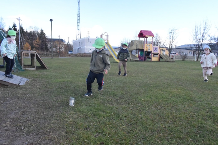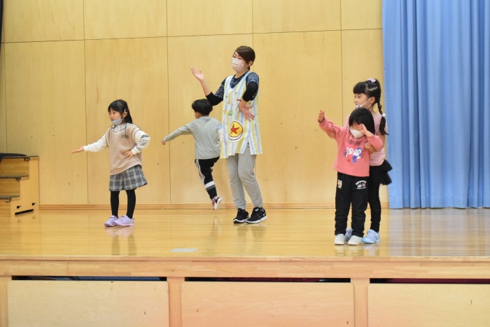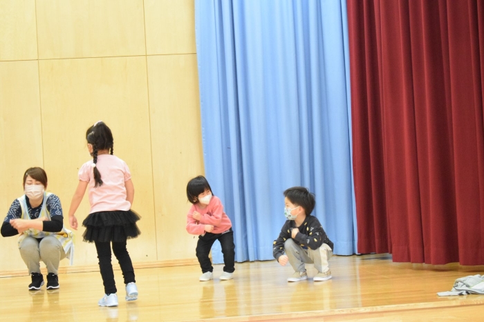 まだ自宅療養の必要な子もいますが今日登園してきた子たちはみんな元気で体を持て余していたようです、朝の遊びではさっそく友達を誘って『かたき』で走り回っていました。お遊戯会の演目も決まり、先生の振りを真似しながら見様見真似でステージで踊りを楽しんでいましたよ。(^^♪