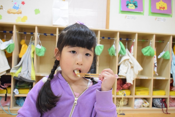 さくらさんが頑張った大根の漬物が出来上がりました!さっそく食べてみると、見事な味付けでとってもおいしく漬かっていました!(^^)! 漬物が大好きな子はもちろん、苦手な子も、自分で漬けたと思うとお味は格別だったようです(^^)/