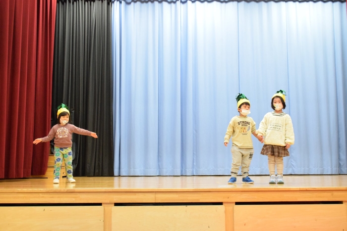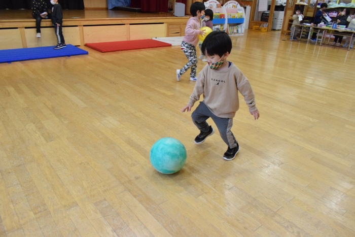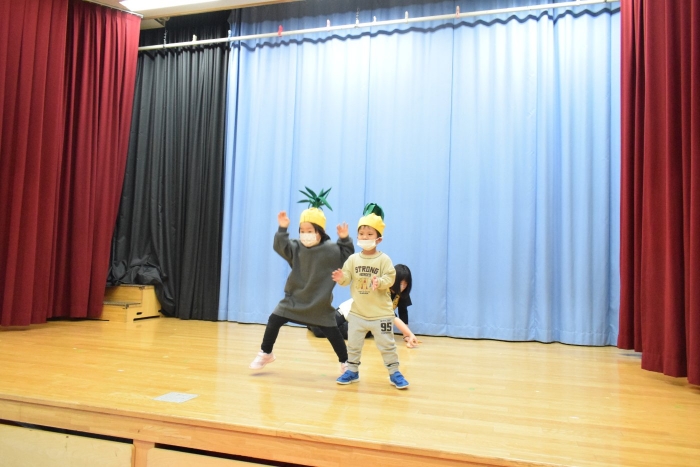 休み明け、エンジンがかからないかな?と思っていたら、さっそくお遊戯の曲をかけて踊りだす子ども達。他のクラスの曲も覚えて見様見真似でダンシング♬