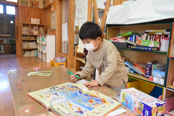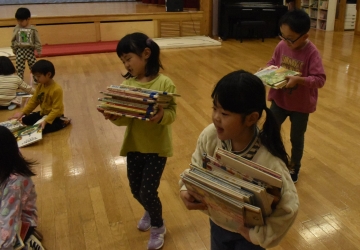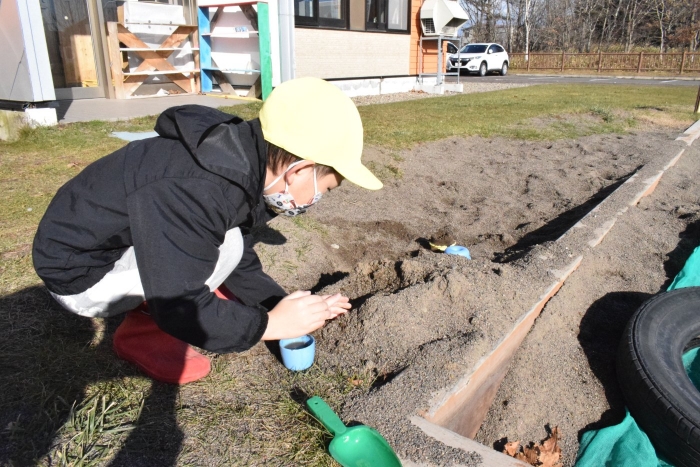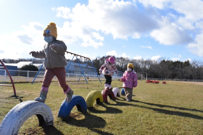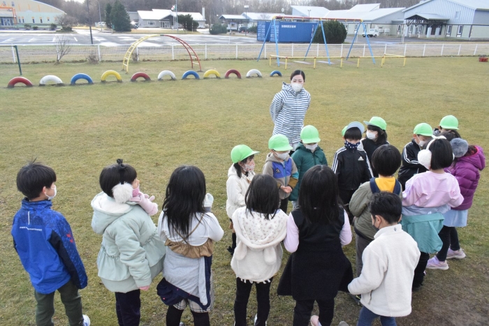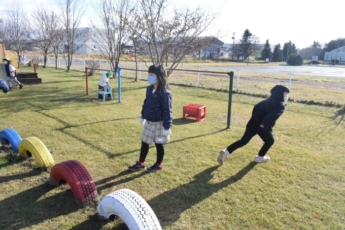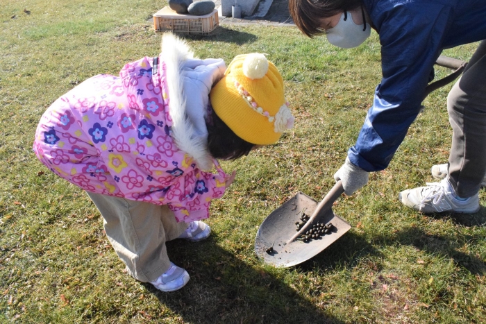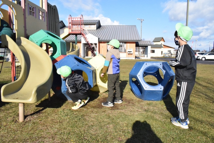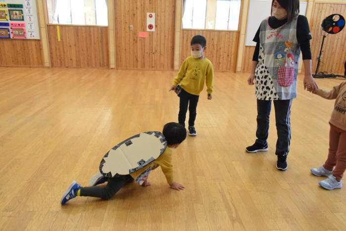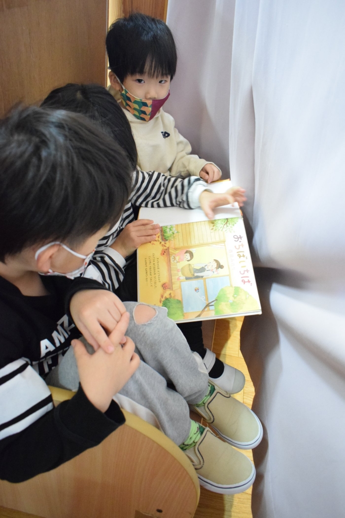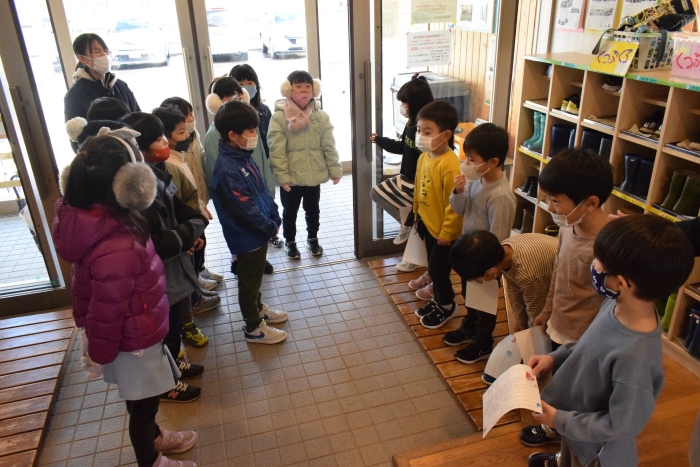 1年生が「おもちゃランド」の招待状を届けに来てくれました。嬉しいお誘いにさくらさんは大興奮! せっかく来てくれたのでそのまま外で一緒に遊びましたよ。さくらさんから「缶蹴りしよう!」と誘って短い時間でしたが懐かしく楽しいひと時がもてました。