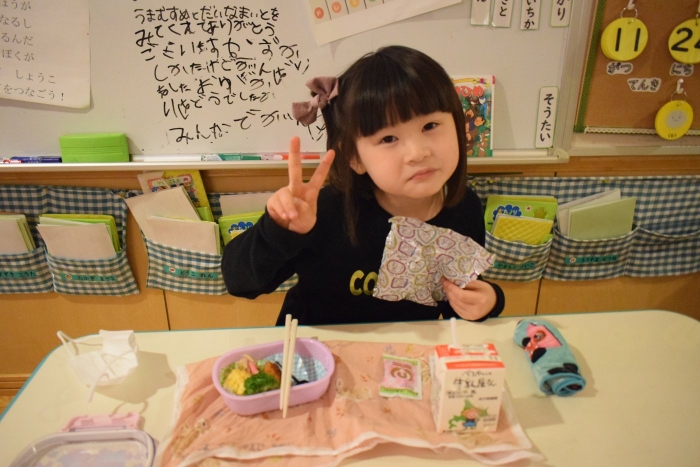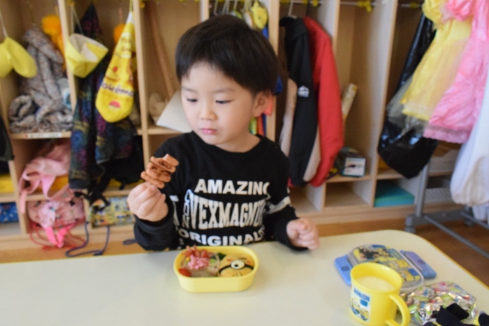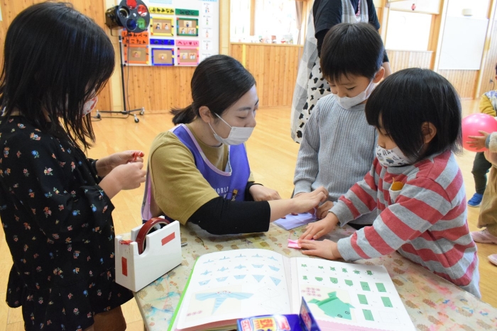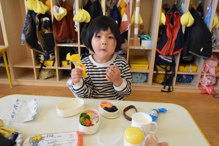 朝の遊びでは落ち着いて製作遊びをする子が多かったです。週末で疲れもたまってきたのでしょうか?!(^^)! 土日はゆっくり休んで月曜日から全員元気に来てほしいです。