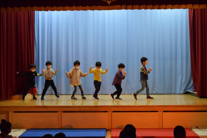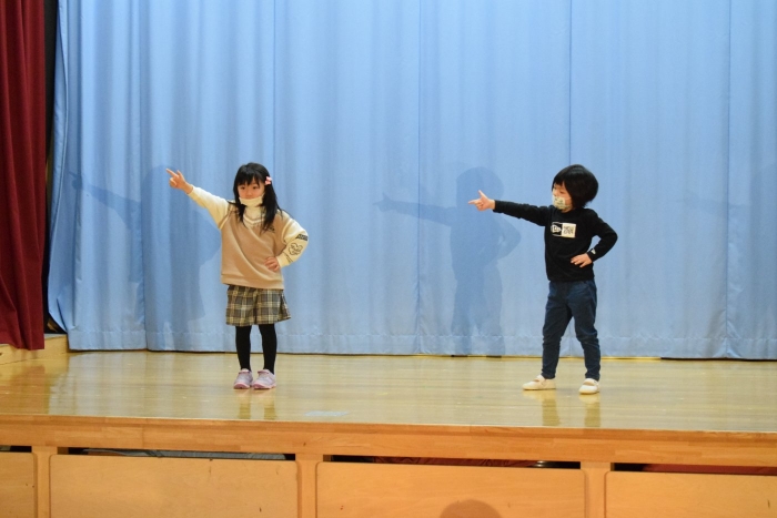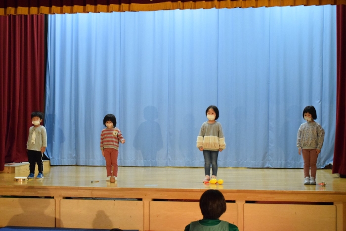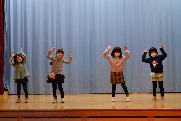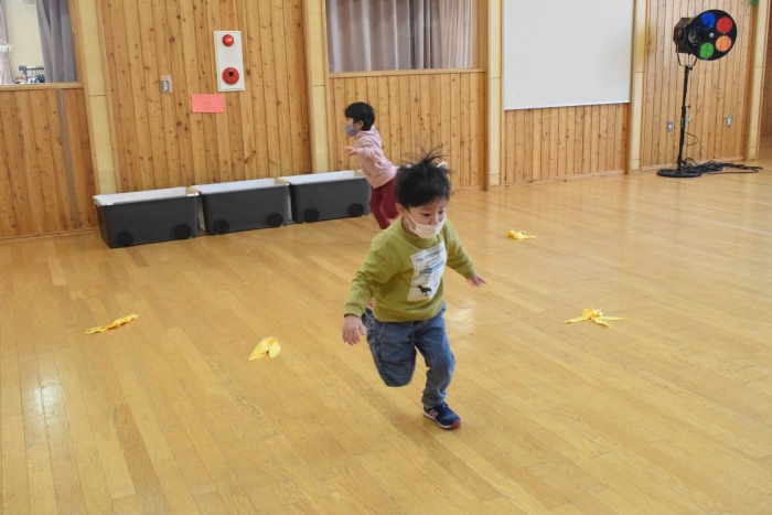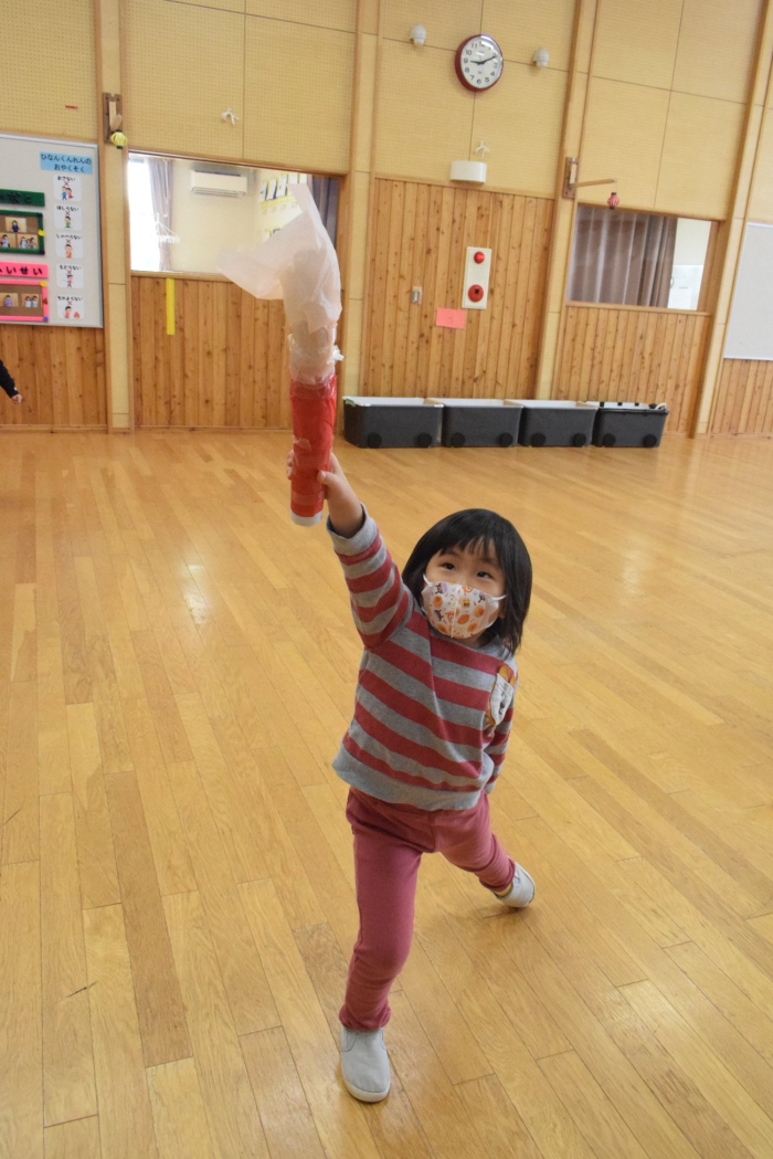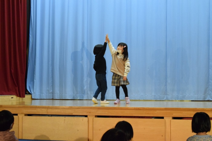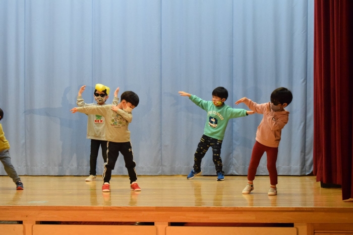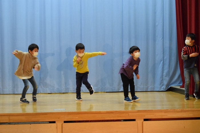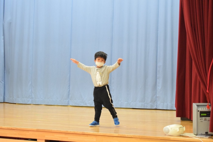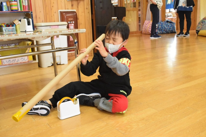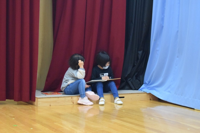 朝の遊びではステージに上がって踊ってみたり、製作に没頭したり、隅っこで絵本を読んだり・・・と思い思いの遊びを楽しんでいました。