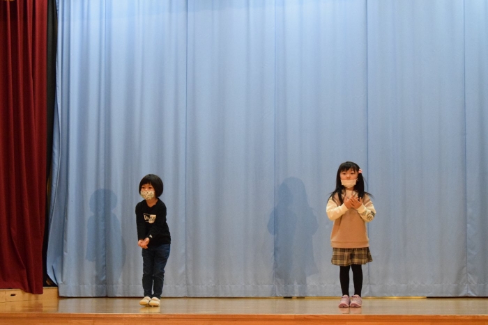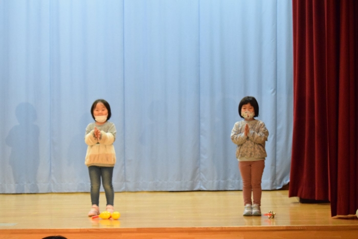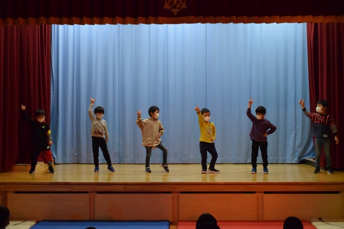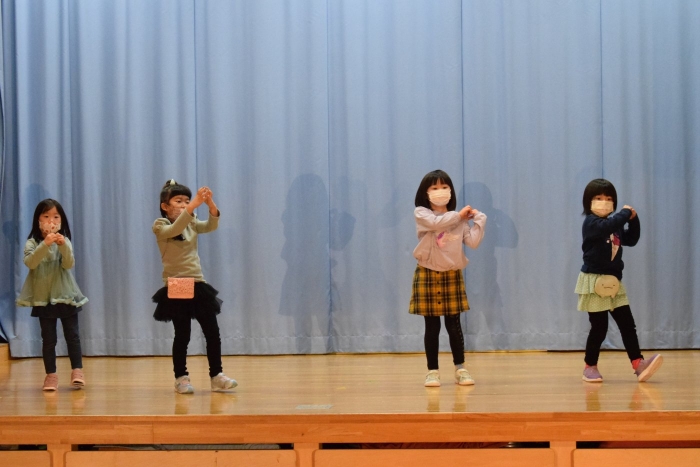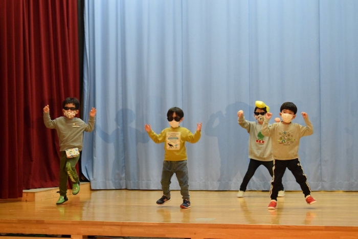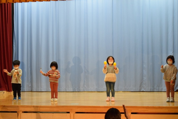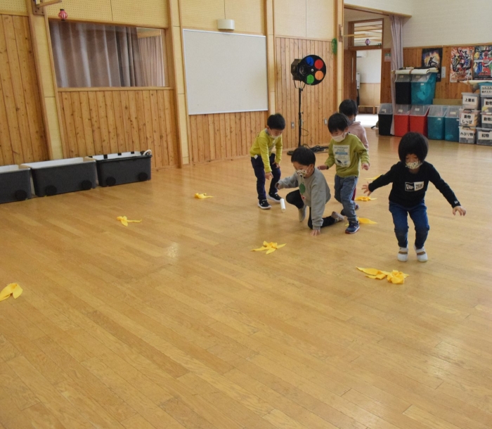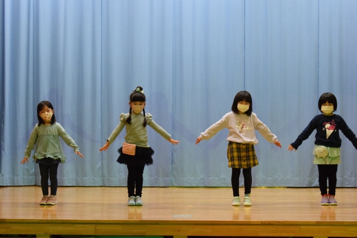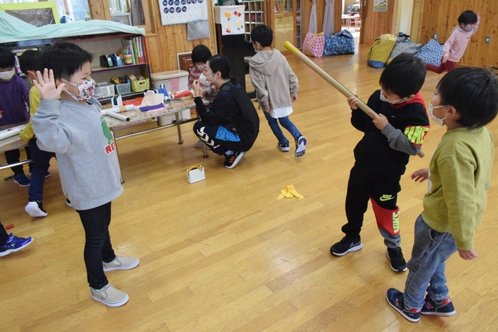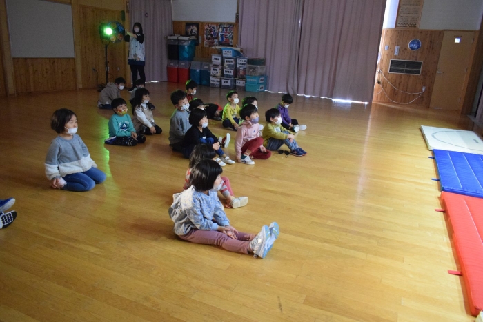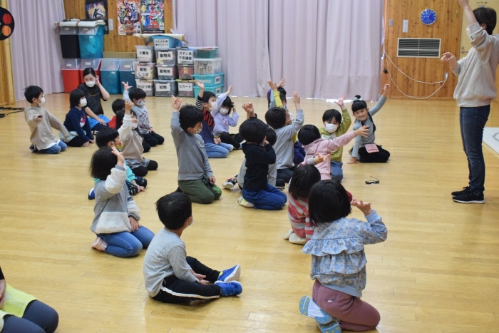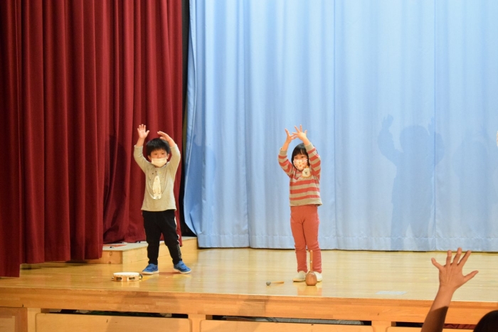 朝の遊びではステージに上がって踊ってみたり、製作に没頭したり、隅っこで絵本を読んだり・・・と思い思いの遊びを楽しんでいました。