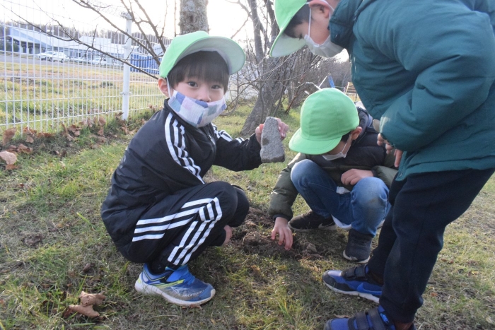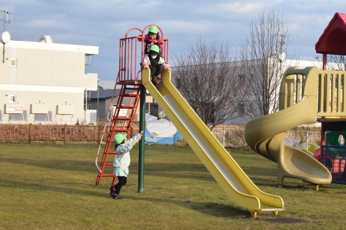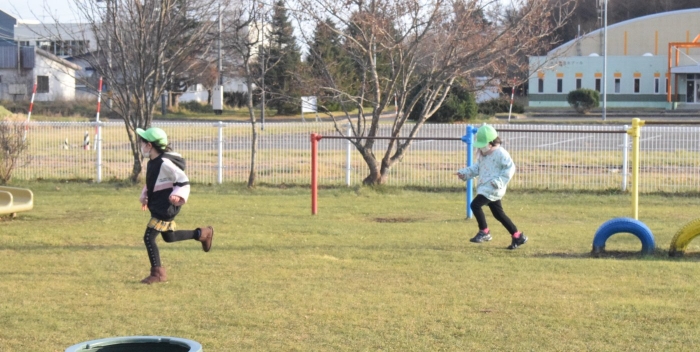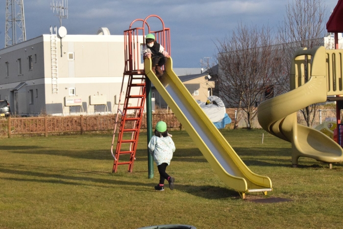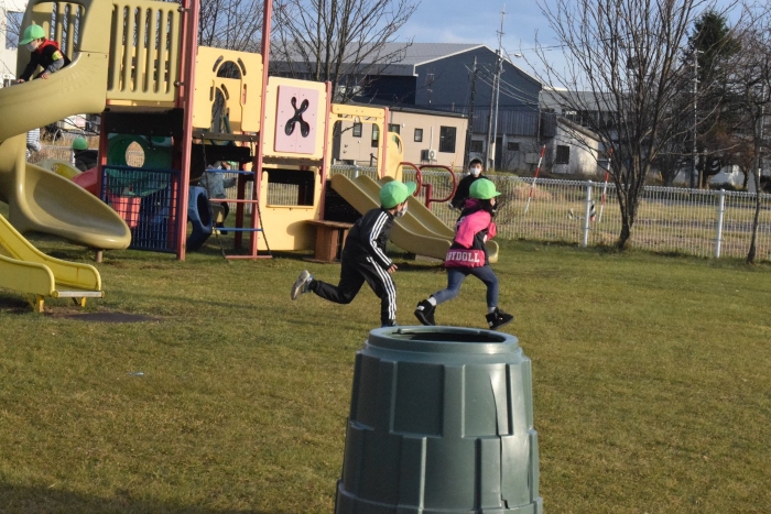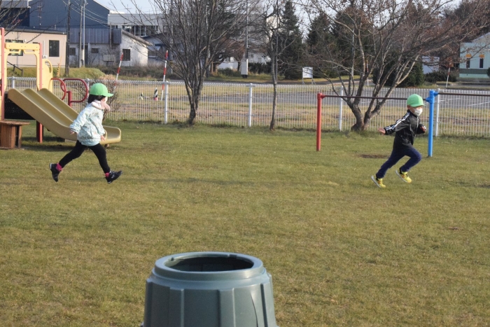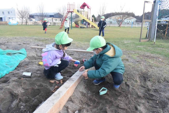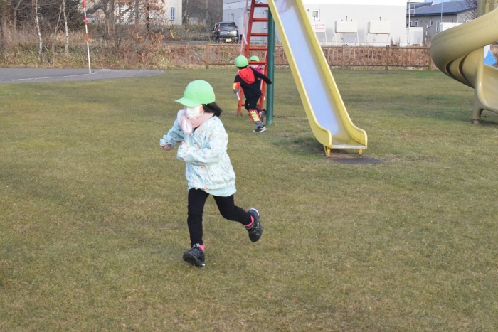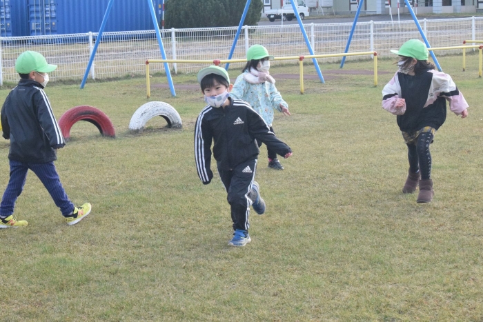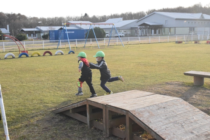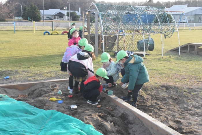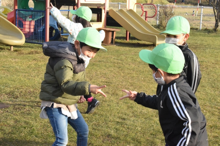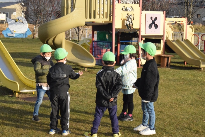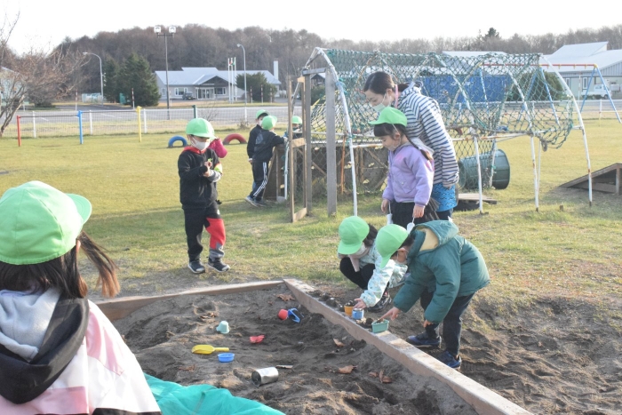 さくらさん午後活動。今日は外でやりたい遊びを!さっそく「変わり鬼ごっこやろう!」と集まっていましたよ。ケーキやさんを開店する二人も!鬼ごっこが終わって疲れたみんなを甘いものでおもてなしするのだそうです。