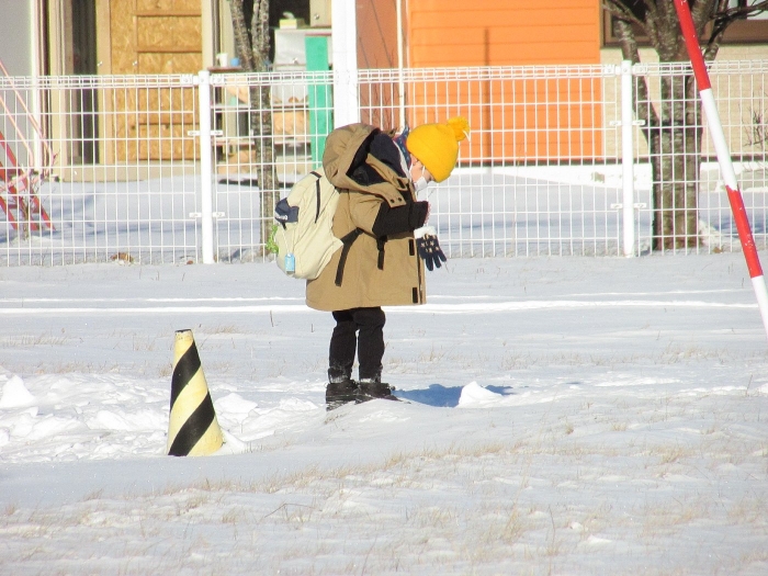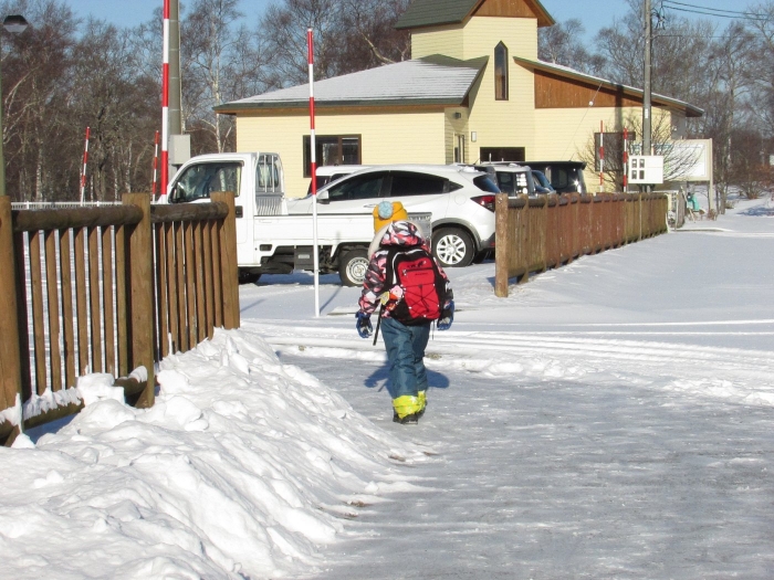 まだ足跡のついていない雪道をラッセルしながら歩きます。