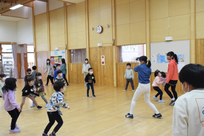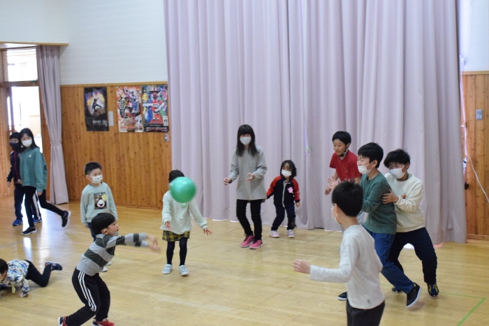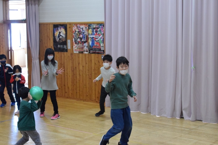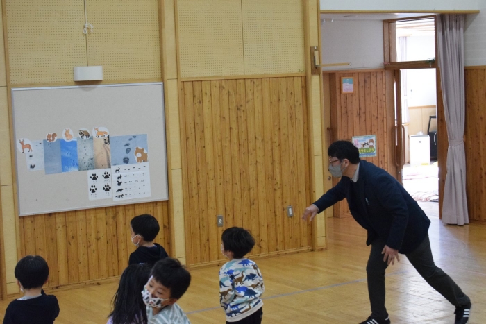 読み聞かせが終わったら幼稚園からの提案で『かたき』を一緒にやることに。5年生も「幼稚園の時にやった!」と意欲満々。5年生対幼稚園児で対決が始まりましたが気が付けば黙っていられない先生たちも仲間に入って本気の勝負が繰り広げられていました( ;∀;) 終わった後の子ども達の顔は満足感でいっぱのいい笑顔がたくさん見られました!(^^)!
