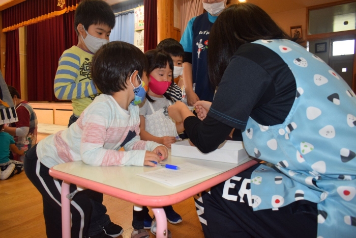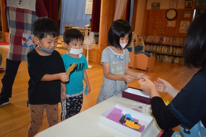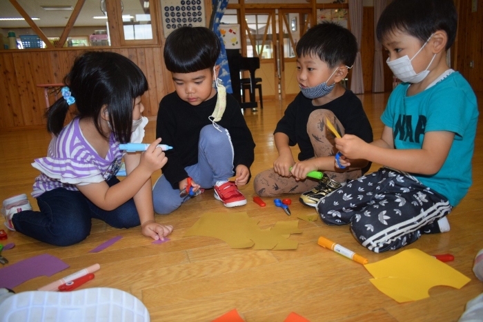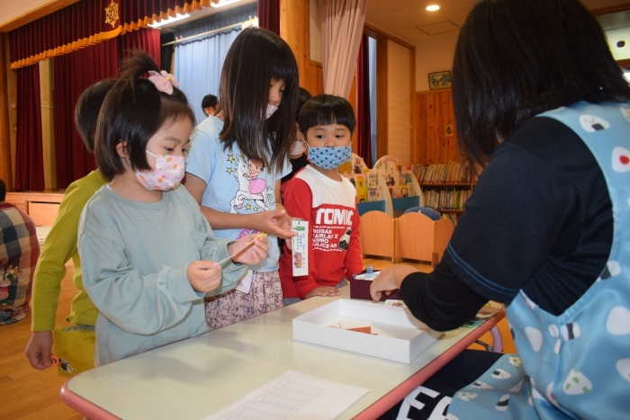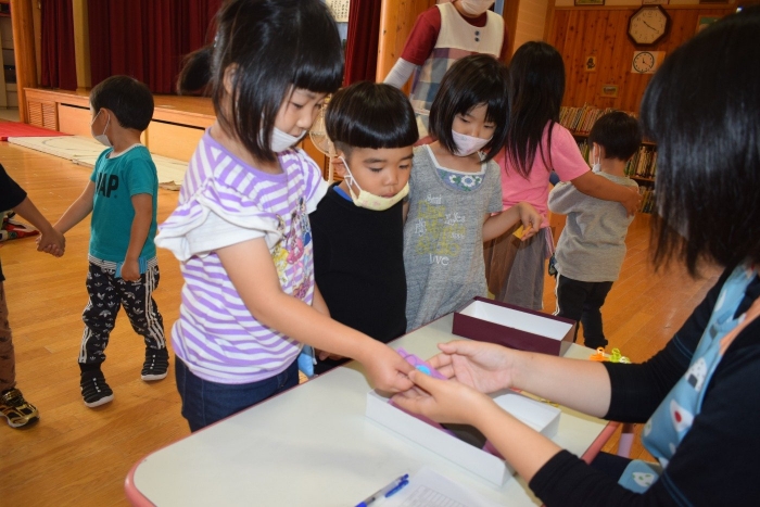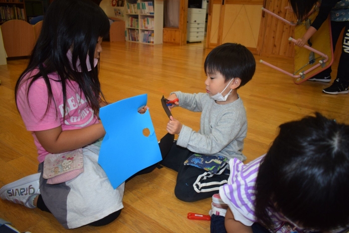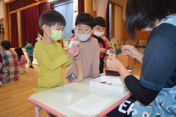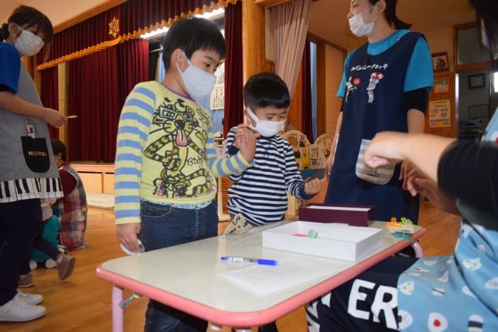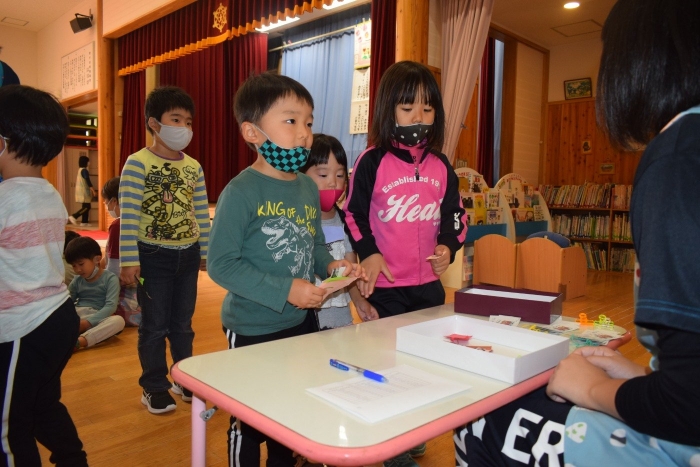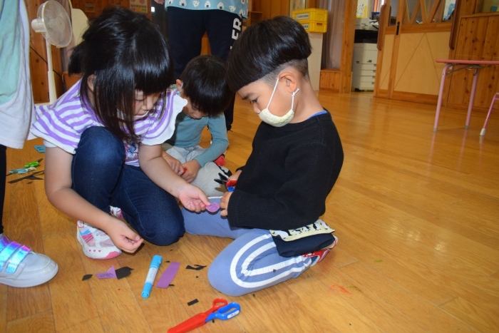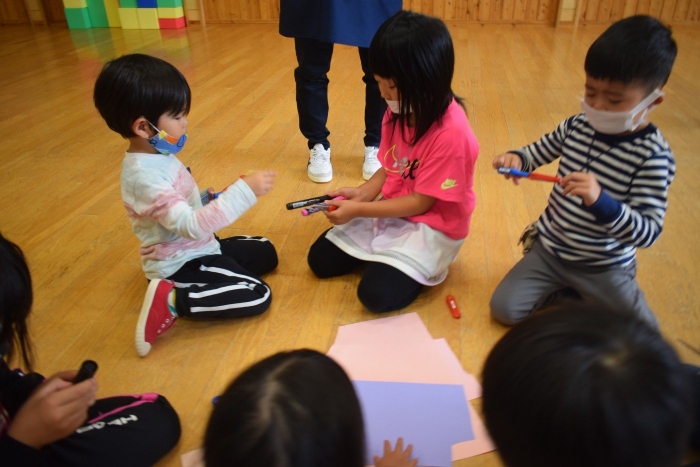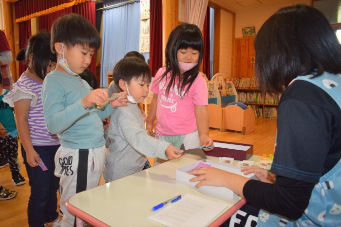昨日は、1日に予定されているバス遠足の期待を高めようと、グループでそれぞれお金を作ってバスに乗るバス切符を買いました。もちろん模擬です(笑)うめ組さんのお友だちにアドバイスや制作の援助をしている年長さんの姿もありました。ほのぼのとしてよかったですよ。みんなちゃんとバス切符を貰うことができて一安心。1日の天気がちょっと心配ですが子どもたちは楽しみにしています。