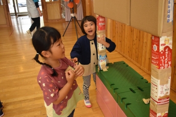 今日は屋内で綱引きをやってみました。引っ張るときのロープの持ち方や腰の落とし方・・・、まずは先生たちの対戦を見せてどこが違うかを考えてみました。よ~く観察していると、わかった子もいて、コツをつかんだようですよ(^^)/ 本番ではどんな体勢で綱を引くかその様子にもご注目ください。