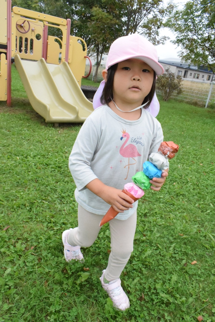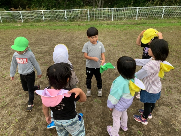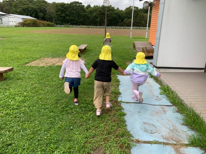 外ではももさん中心にバナナ鬼が始まっていました。最初は少人数でしたがだんだんと仲間が増えてさくらさんも入って行動範囲が広がっていました。