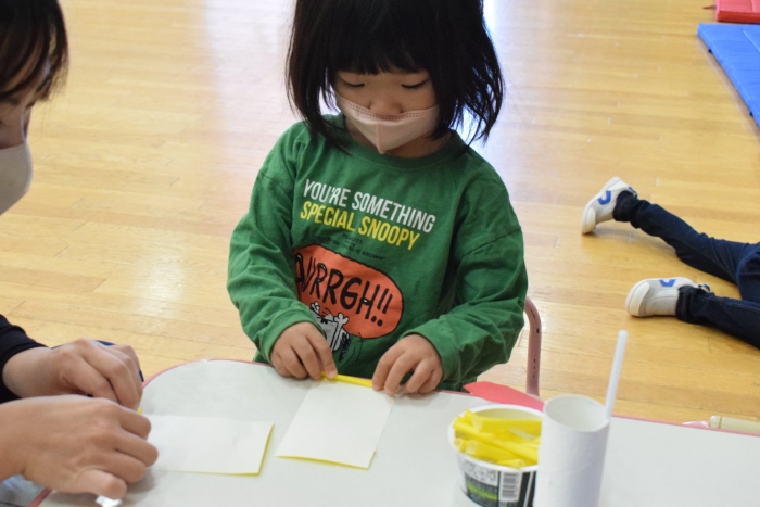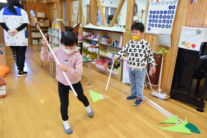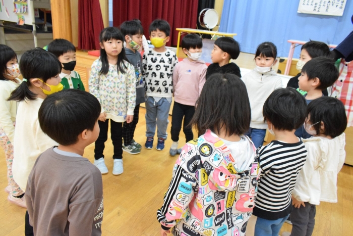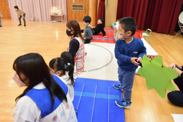 「先生たちと対戦したい!」とさくらさんからの『かたき』への挑戦を受けて先生方もやる気満々で仲間入り。今までの経験からルールを新しくしてみんなで確認したり、時間を決めたりして、楽しく遊ぶためには、ということを考えながら取り組んでいました。
