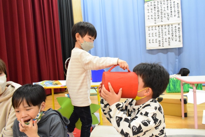 当たってしまったお友だちにさくらさんの劇で使ったうちわであおいであげていました(^^)/