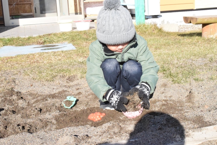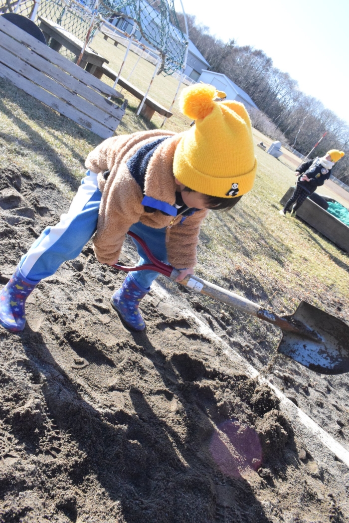 最後は砂場で遊んだうめさんがしっかりお片付け。