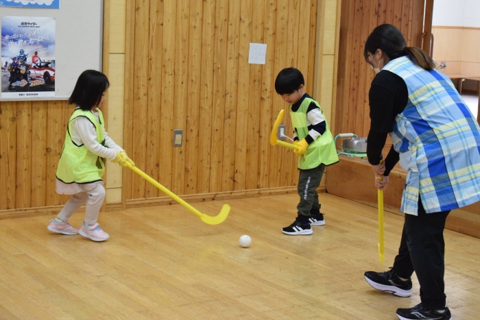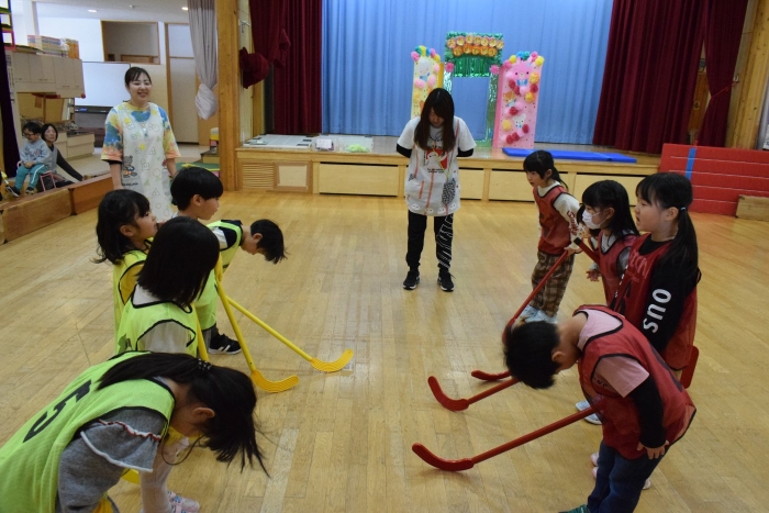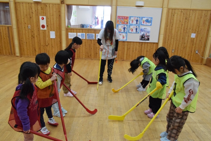 今、さくらさんが熱く燃えているホッケーをみんなでやってみました。
