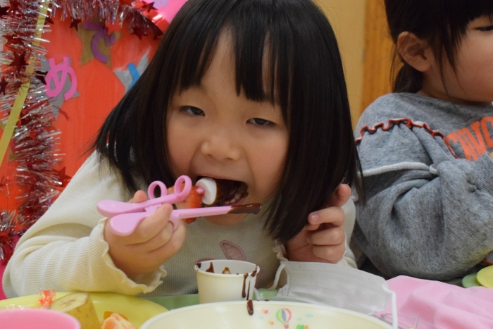 明日はバレンタインデーということで、今日のデザートはチョコフォンデュ(^^)/