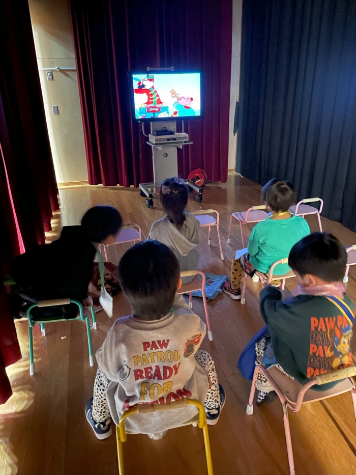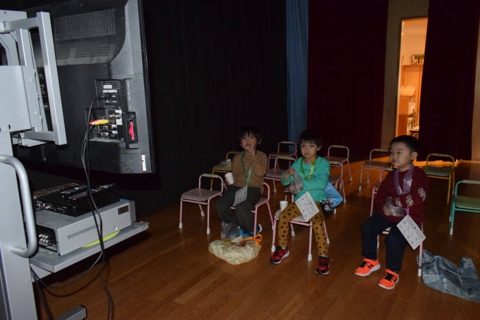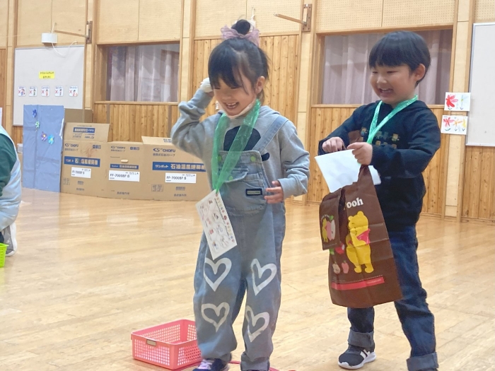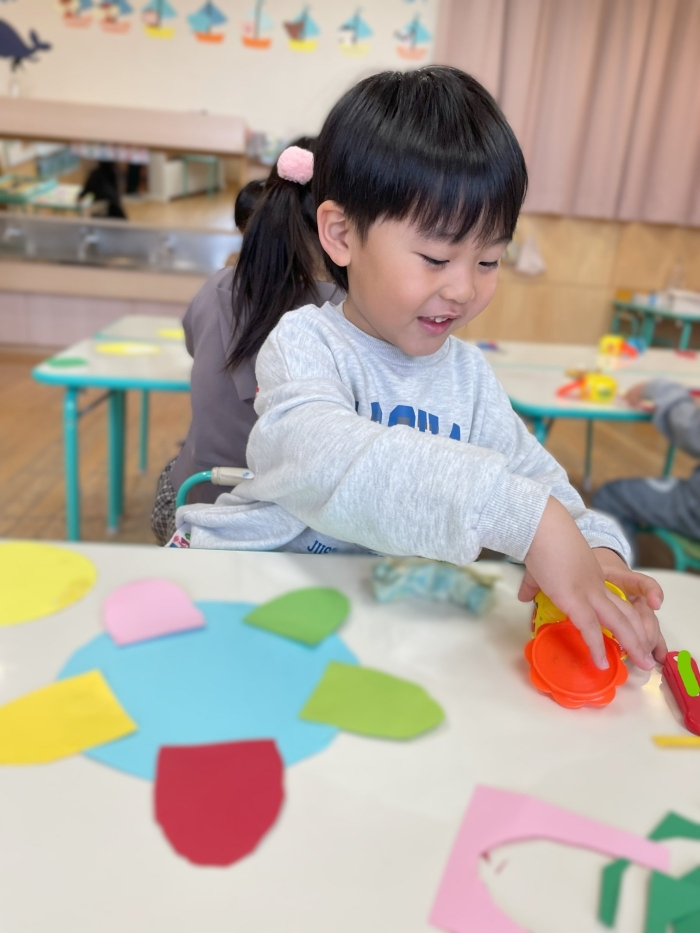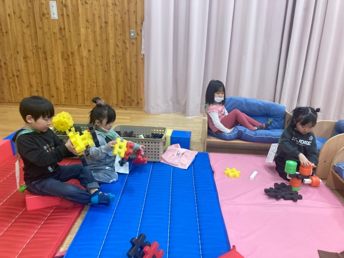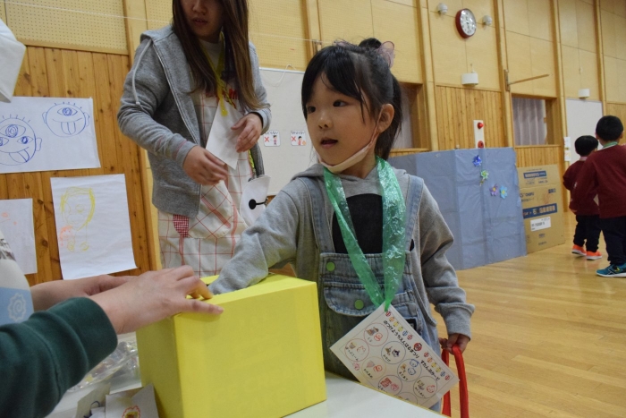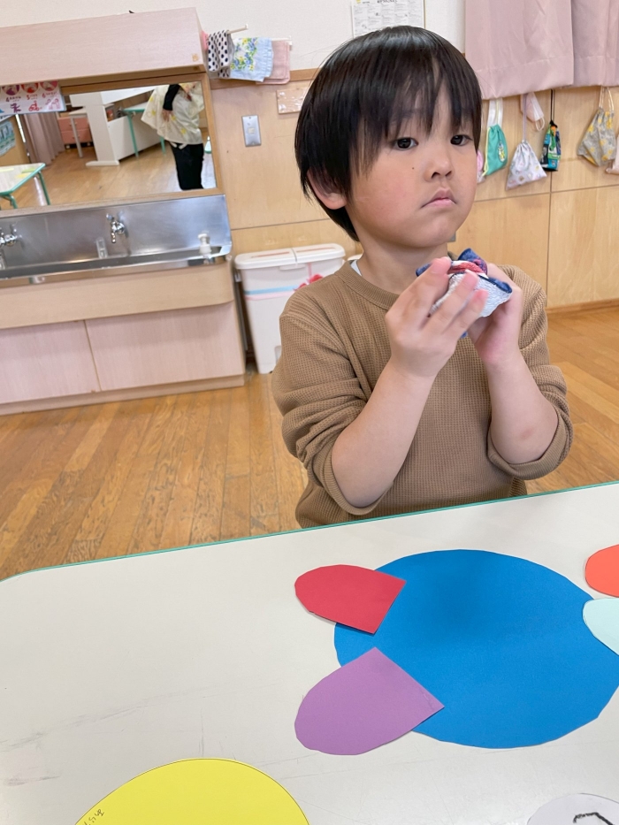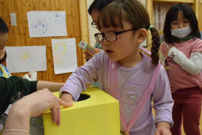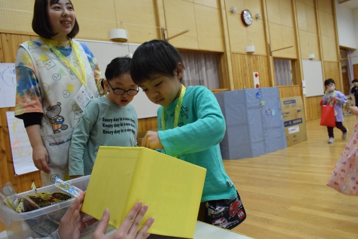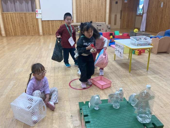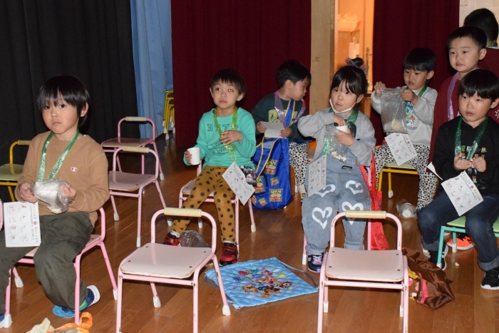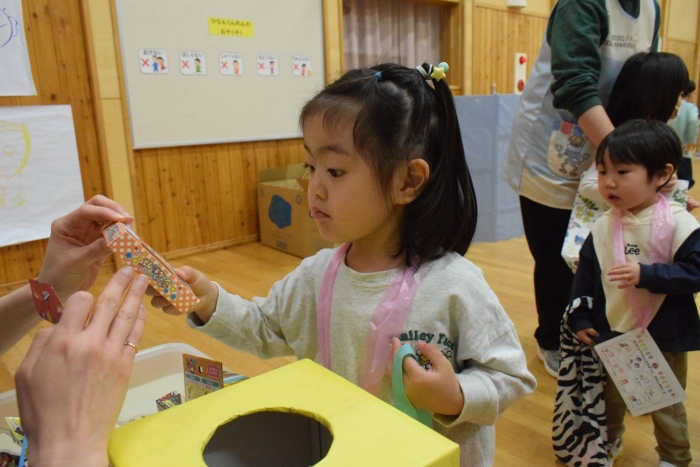 先生たちは,お祭りの準備をせっせと行っている間,みんなには遊んで待っていてもらっていました。さくら組さんはお部屋で何やら製作中…