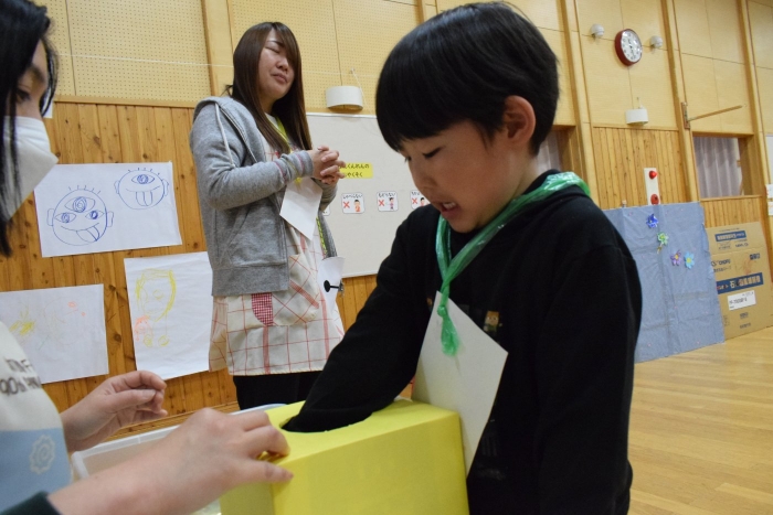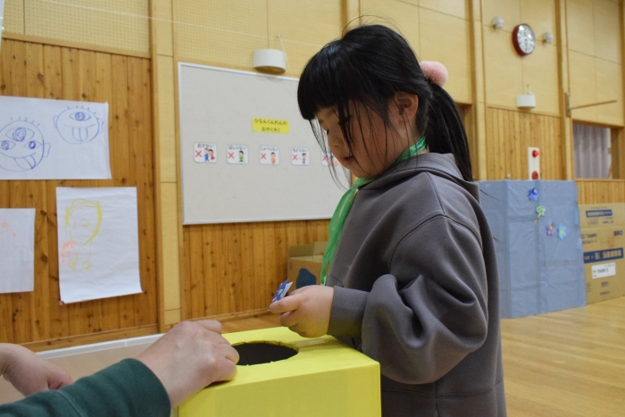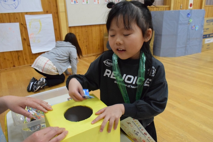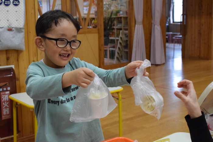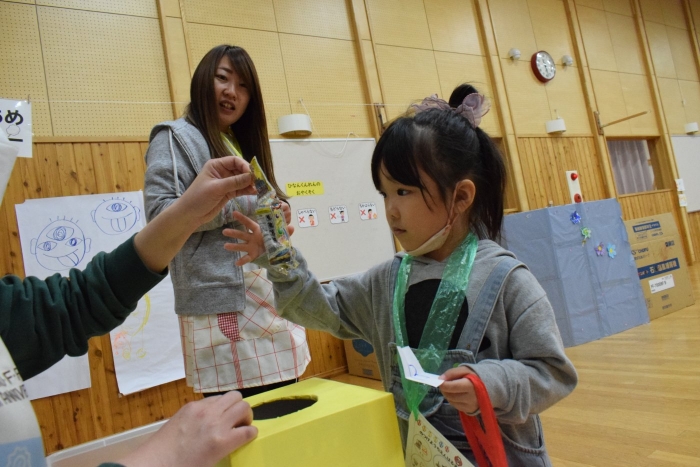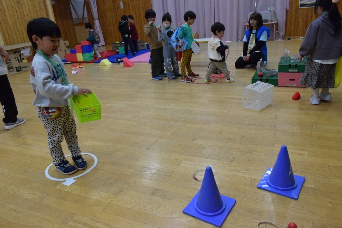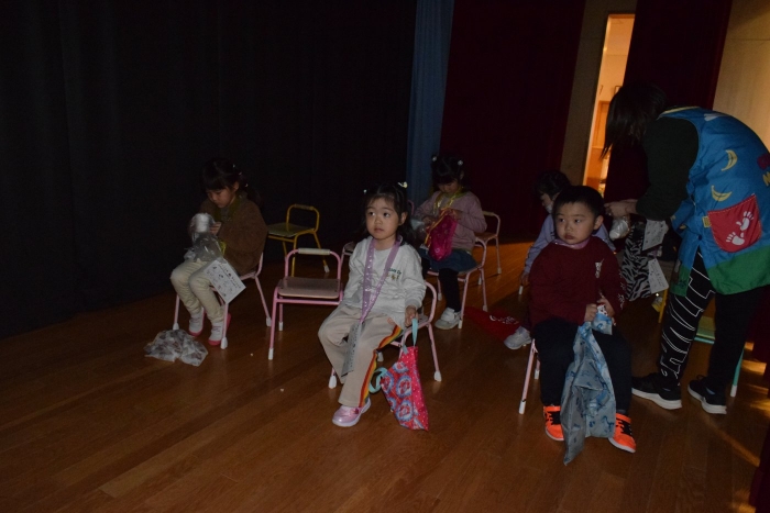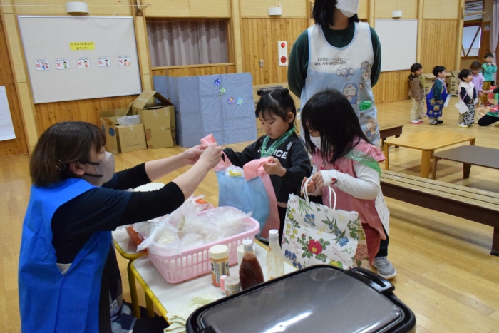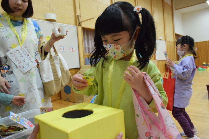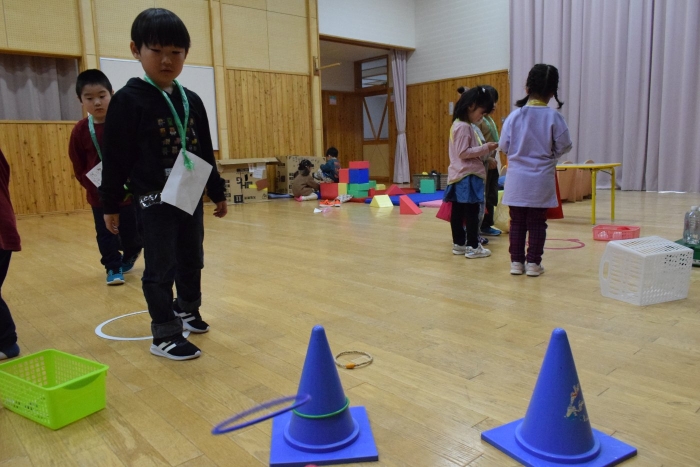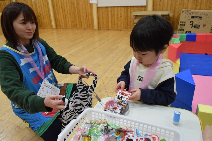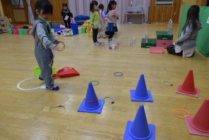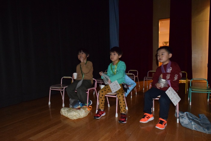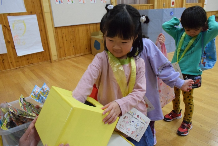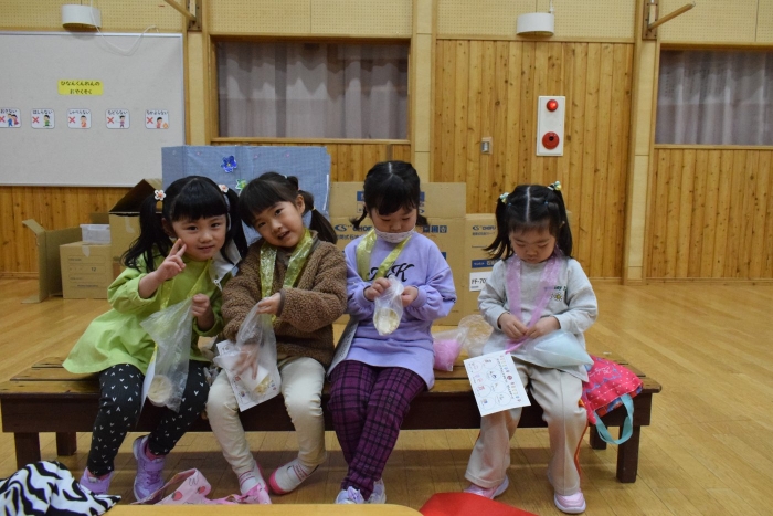 先生たちは,お祭りの準備をせっせと行っている間,みんなには遊んで待っていてもらっていました。さくら組さんはお部屋で何やら製作中…