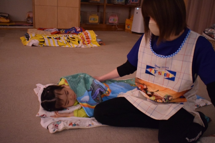 昨日お休みしていたため,今日がお昼寝デビューのうめ組さんの様子は・・・