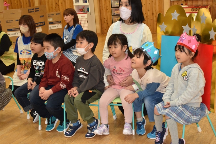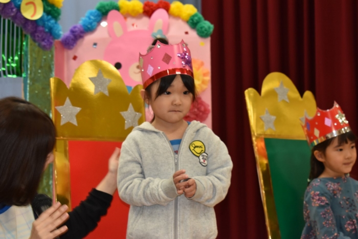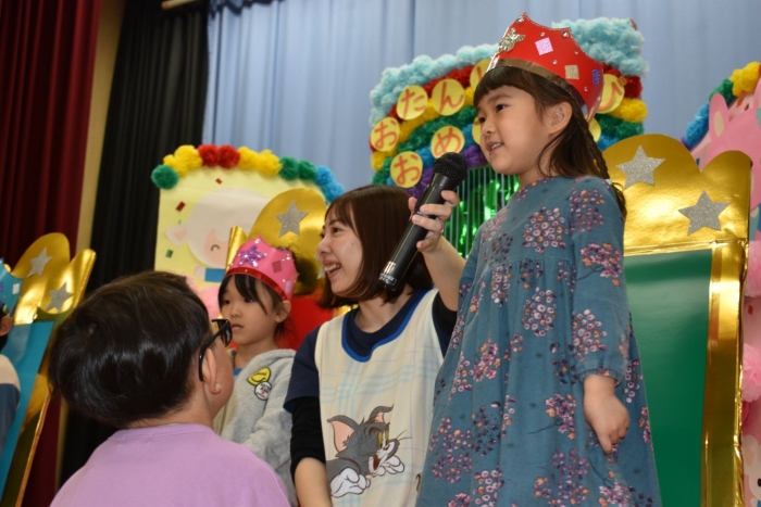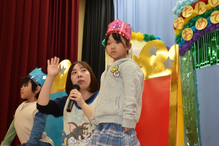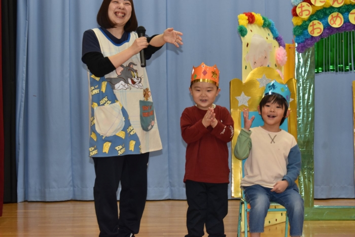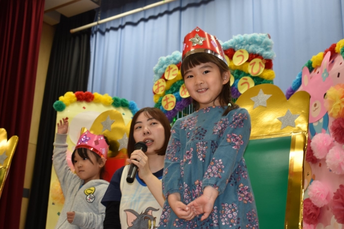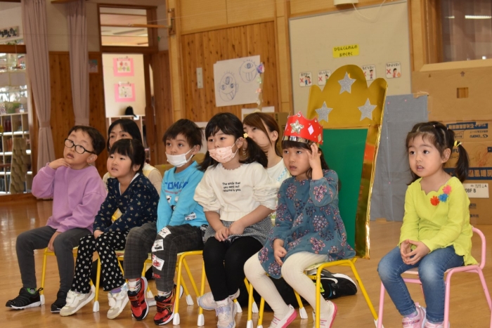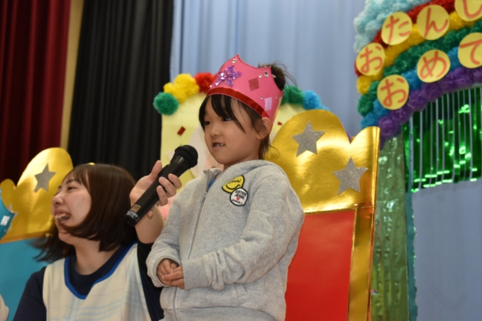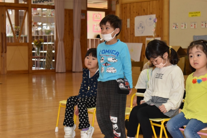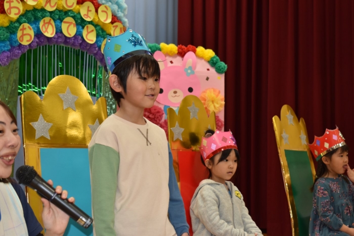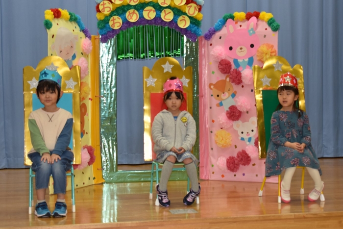 そしていよいよお誕生会のはじまりです!4月生まれのお友達は4人ですが,残念ながらお休みのお友達がいたため,今日お祝いするお友達は3人です。