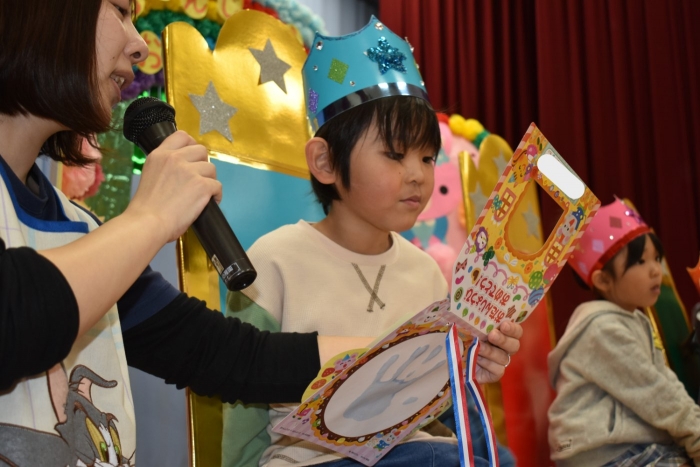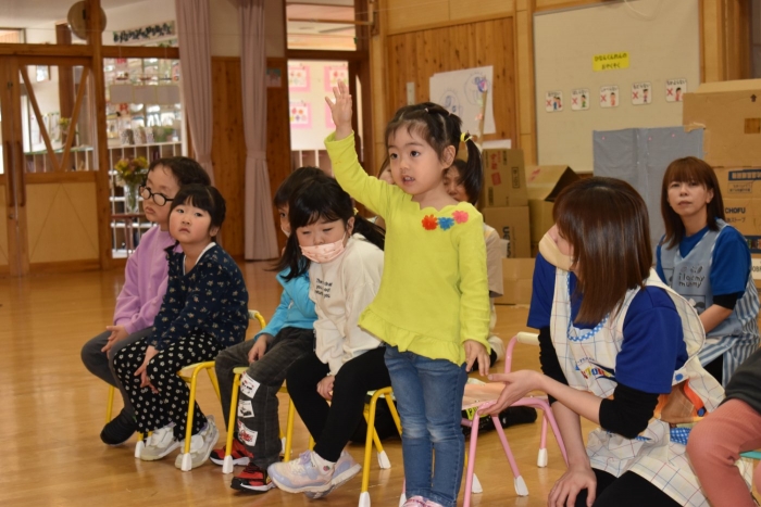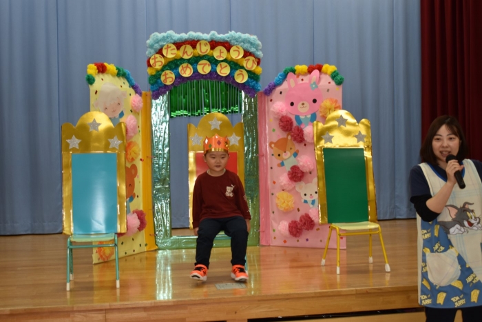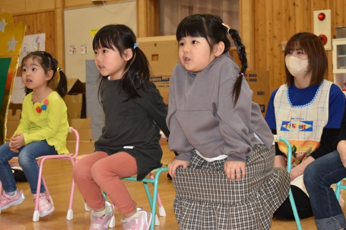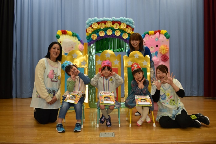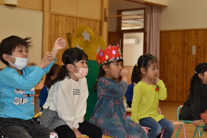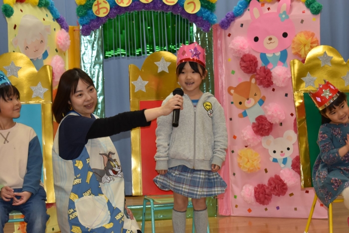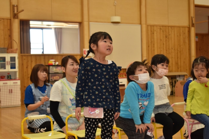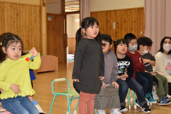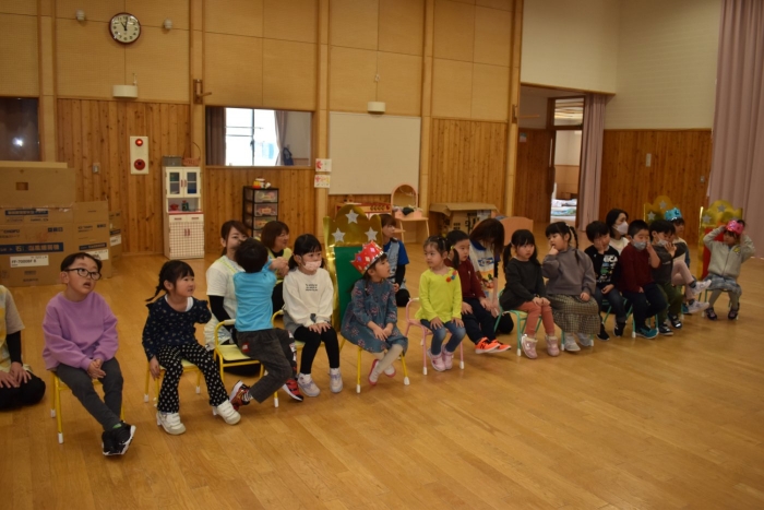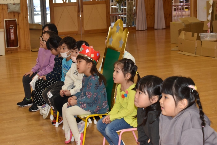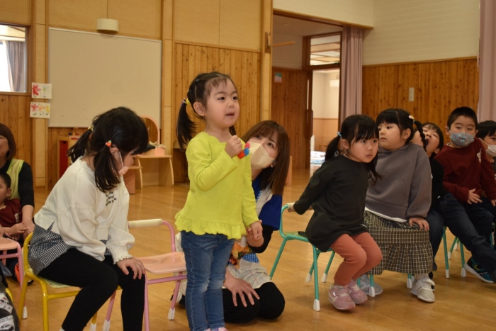 そしていよいよお誕生会のはじまりです!4月生まれのお友達は4人ですが,残念ながらお休みのお友達がいたため,今日お祝いするお友達は3人です。