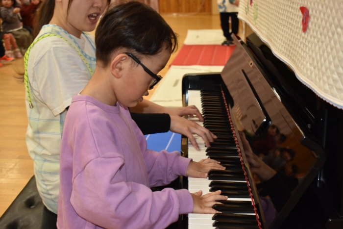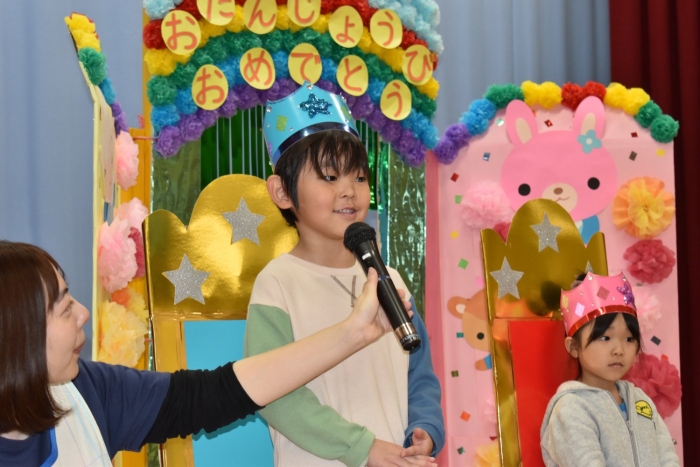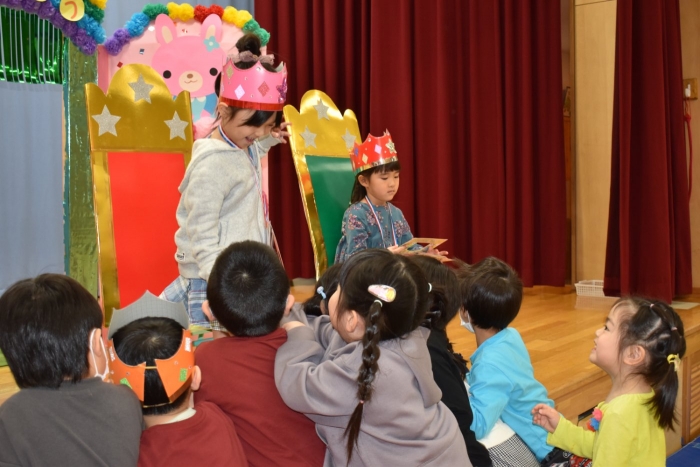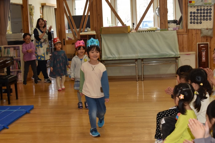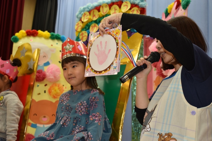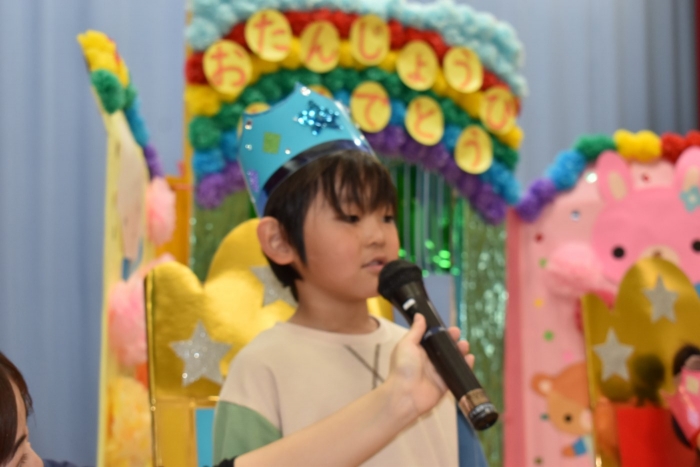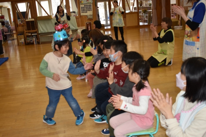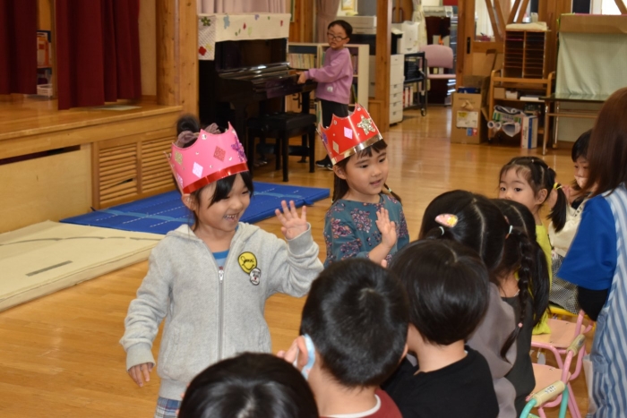今日は4月生まれのお友達のお誕生会がありました。お誕生会はお誕生日のお友達にとっては一大イベントです。他の子どもたちも,お友達をお祝いしてあげるという大事な役目があります。家でももちろんお誕生日をお祝いすると思いますが、幼稚園でも年に一度自分がお祝いされるこの日をみんな楽しみにしてくれているみたいです。
