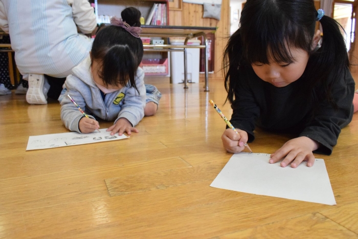 お誕生会の前に,まずは朝の遊び風景をご紹介。 今日もお休みのお友達も多かったですが,思い思いに遊んでいましたよ。