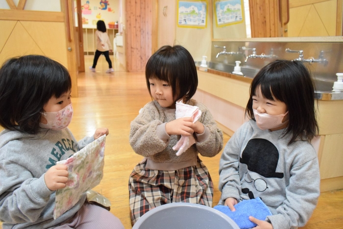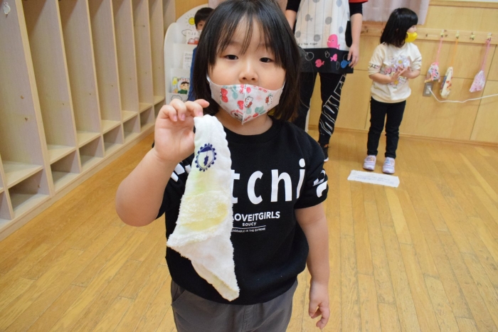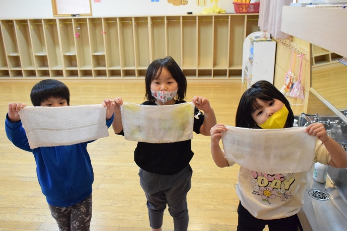 「きれいになったよ、さわってみて!」「ほんとに~?」