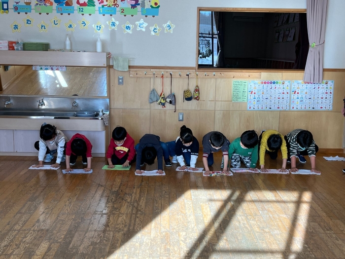 大掃除が終わって遊びたくてウズウズのうめさんは、さっそくそり遊びへ出かけて行きました。今日のゲレンデは昨日より雪が固くなっていて押さなくても自然に滑り出す最高なコンディション(^^)/ 昨日よりも慣れてきたのか転ぶ子も少なく、何回も滑っては登って、を繰り返し心ゆくまで楽しんでいました。