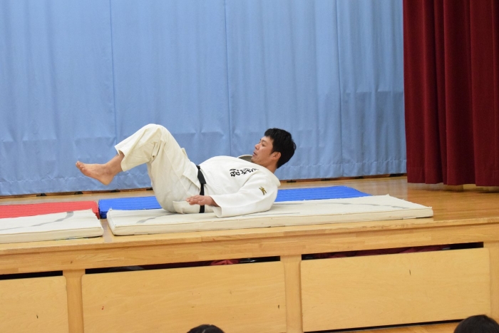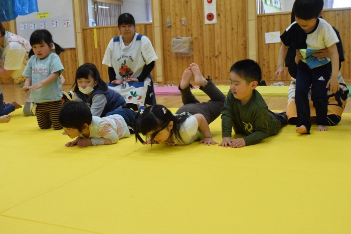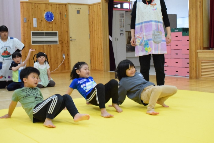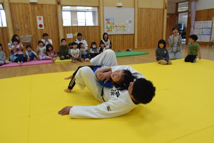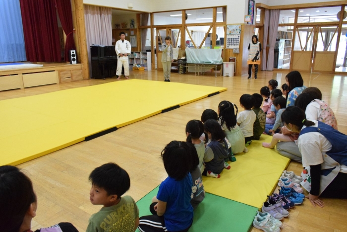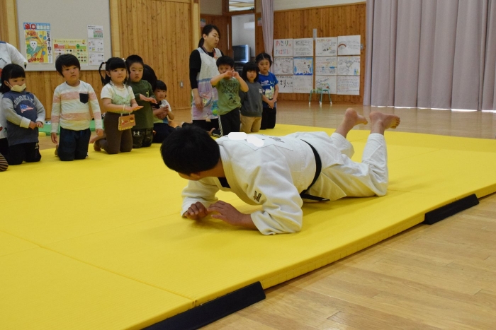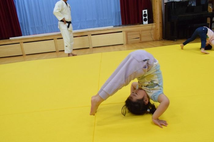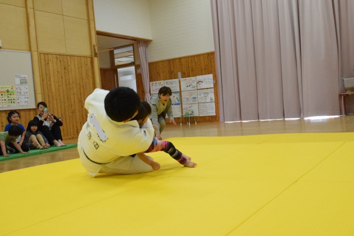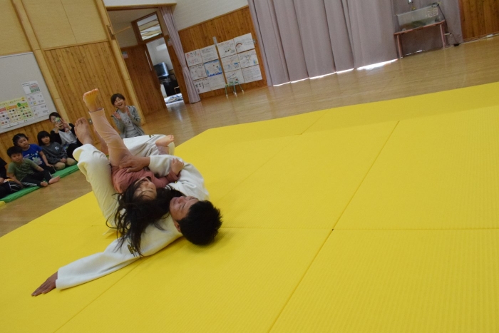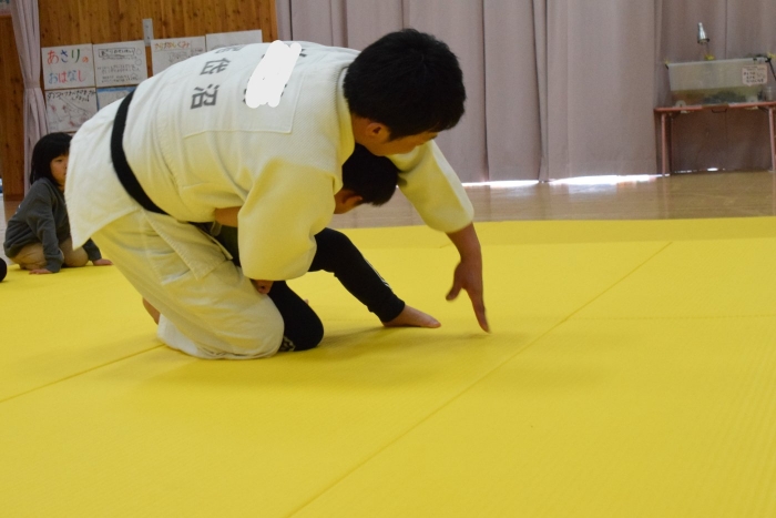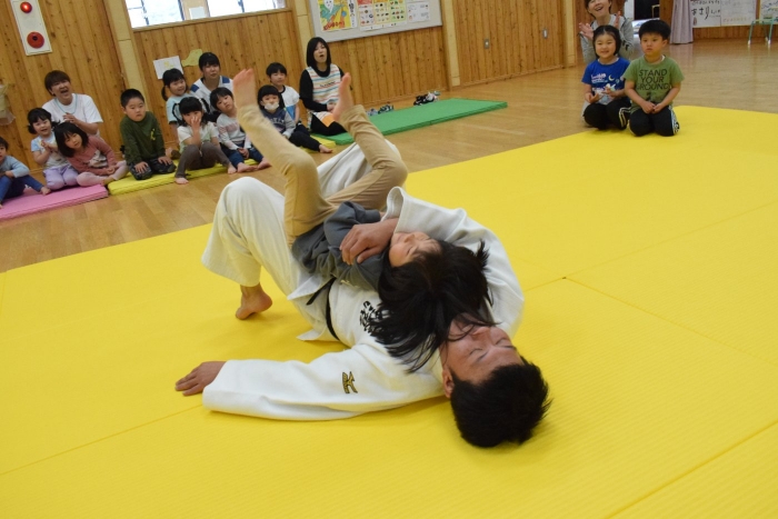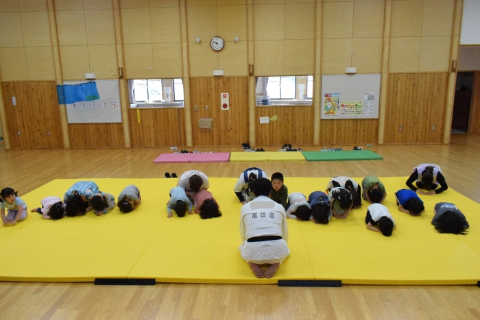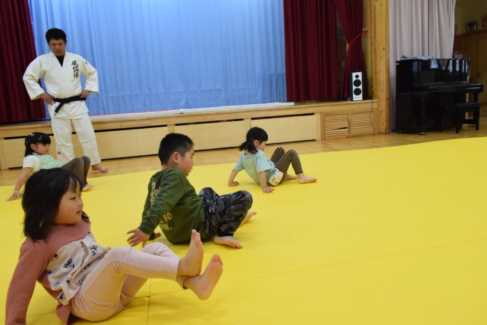 今年も尾岱沼柔道スポーツ少年団の方のご厚意で柔道体験をさせていただく事ができました。例年3名で来ていただいていましたが今回は都合で1名の講師でご指導いただきました。たくさんの子どもたちに投げられてかなり大変だったと思いますが子どもたちは大喜びでした!(^^)! ありがとうございました!