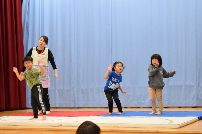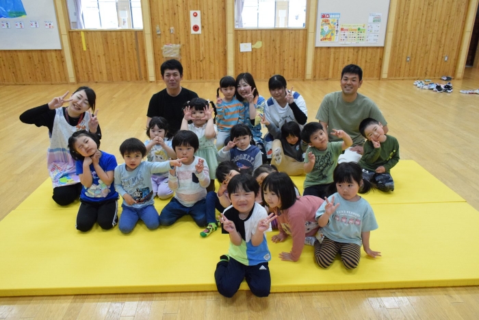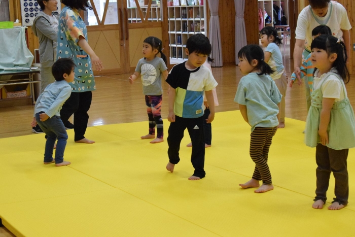 準備体操は「はとぽっぽ体操」。講師の先生も保育園時代を思い出しながら!(^^)!