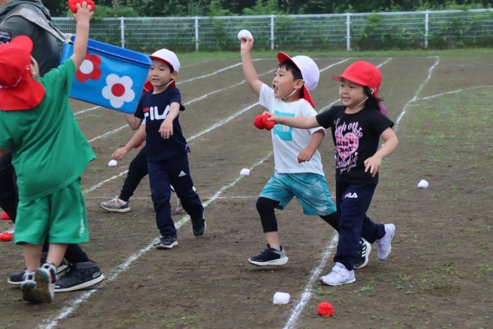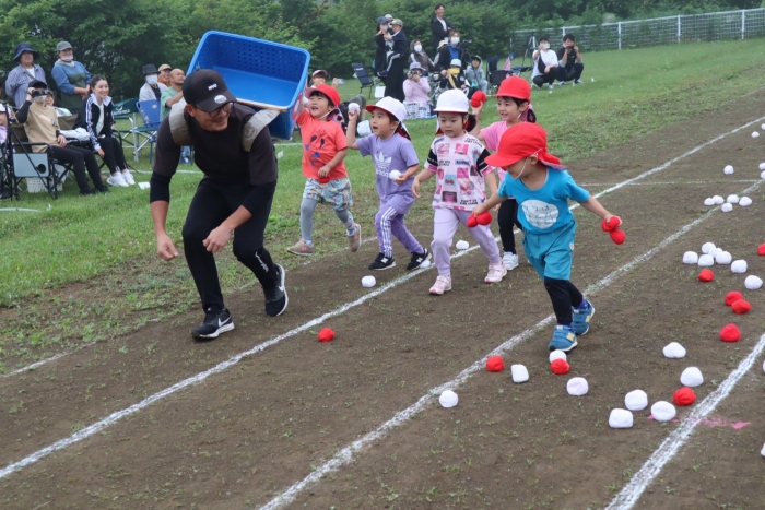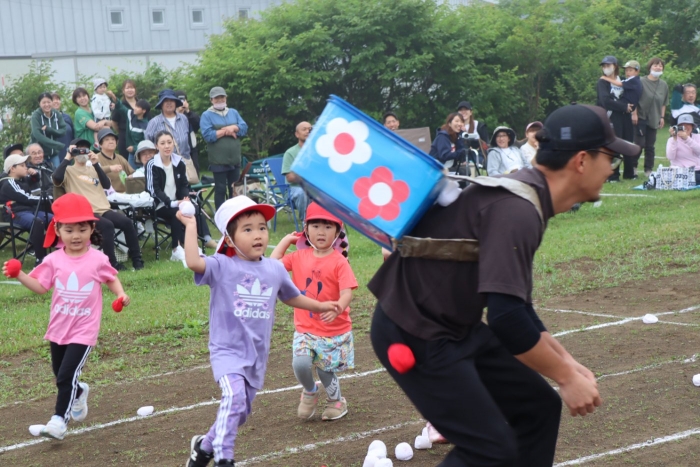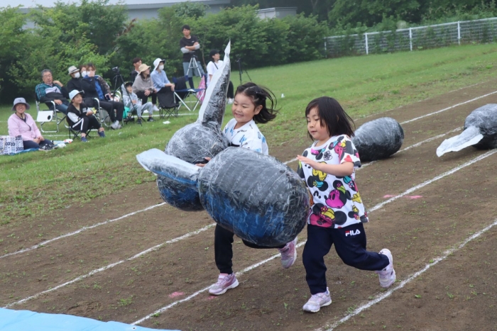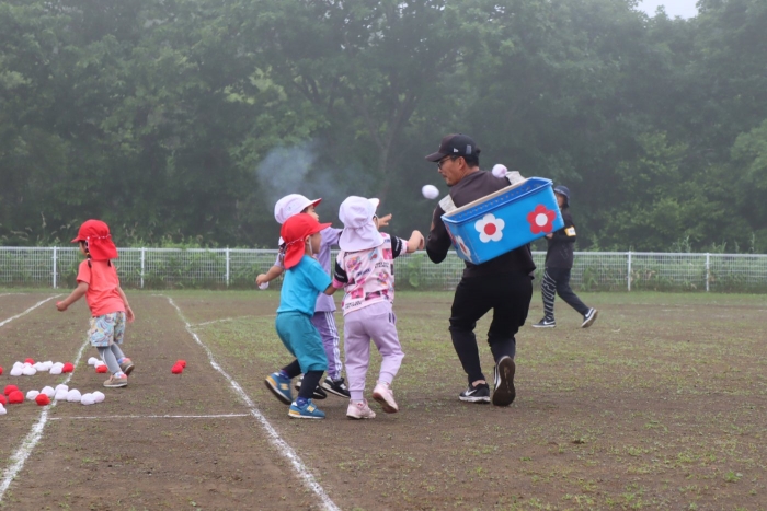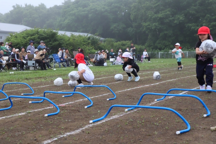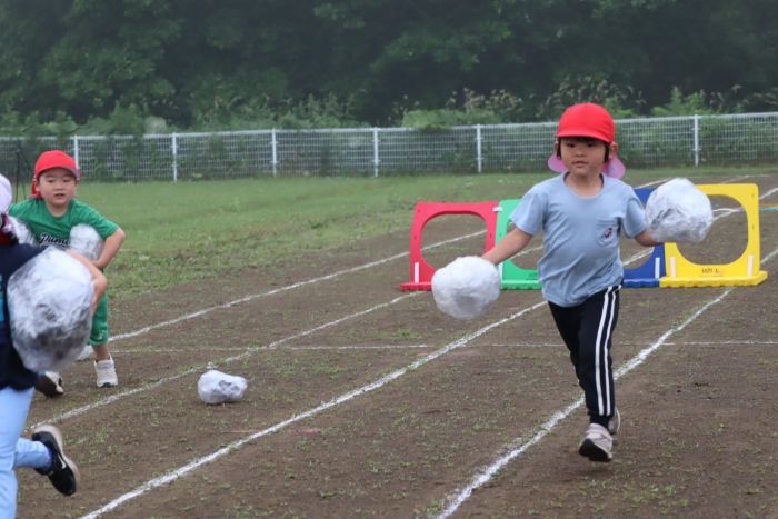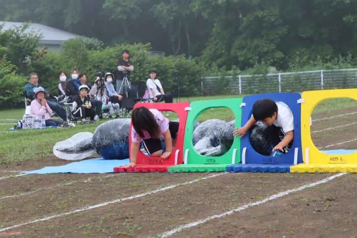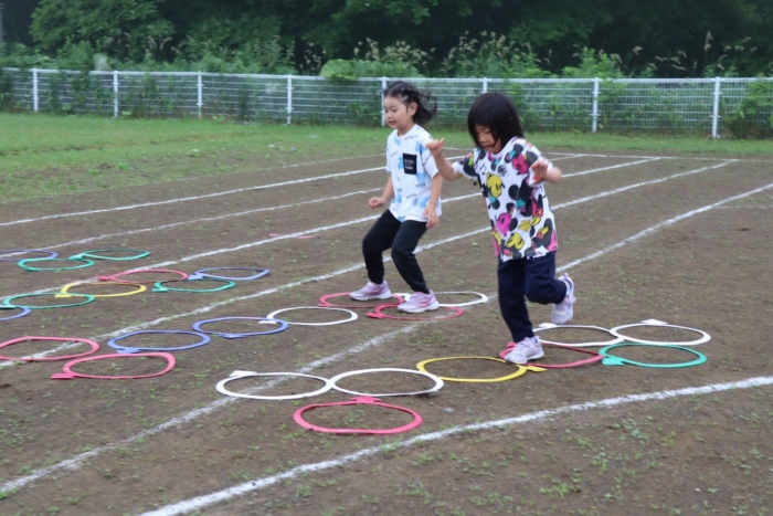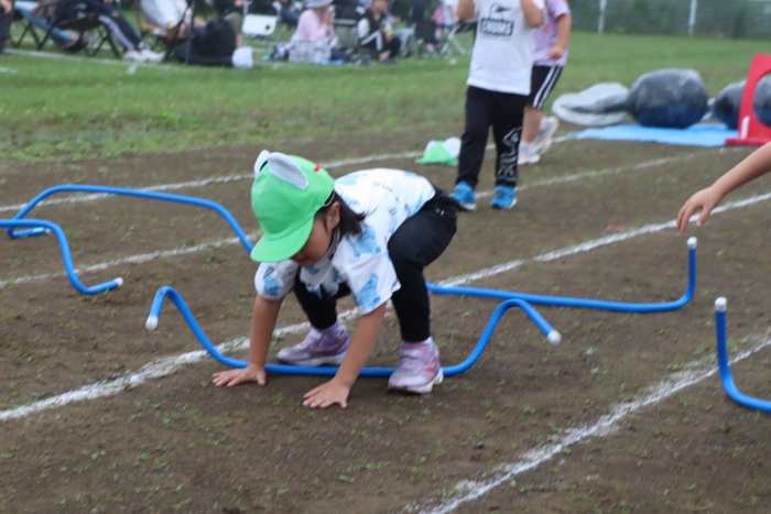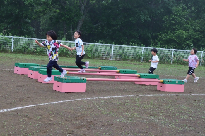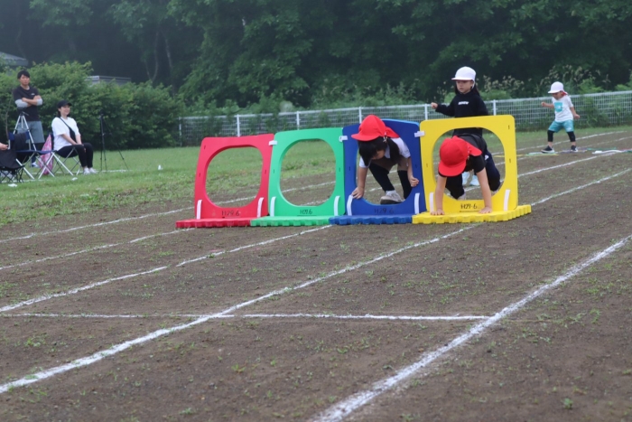 カエルの卵を飼ったことから始まった、飼育活動を障害物競走に取り入れました。クラス毎にレベルアップしていく内容で障害物が盛りだくさんでした!(^^)!
