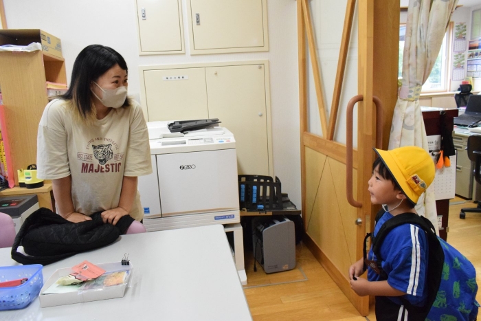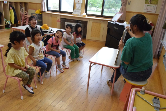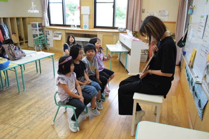 2学期始めの読み聞かせ。絵本の大好きな子どもたちは「今日はだれのおかあさん?」とワクワクして待っていました。