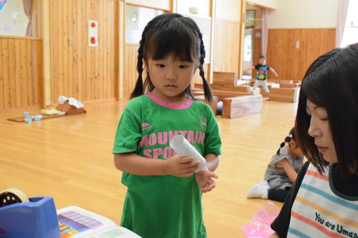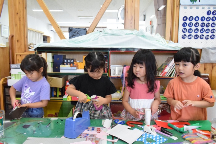 子どもの発想はおもしろい(^^)/ いろいろな素材を出しておくとパッと閃いて、大人が考えないような物を作ります。柔軟な発想力は自分の世界を豊かにすることにつながると思っています。そのアイディアや思い付きは固定観念にとらわれない子どもならではの発想です!(^^)!