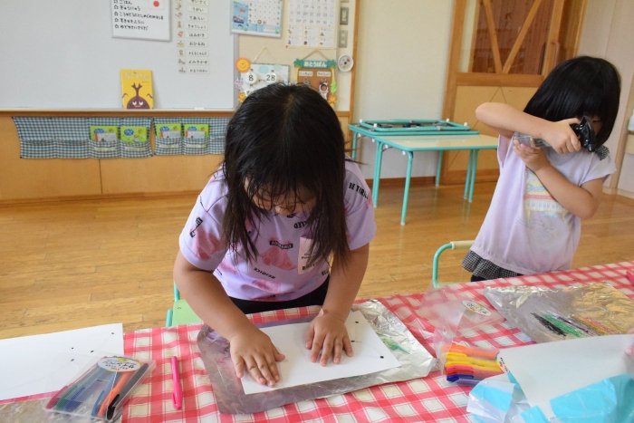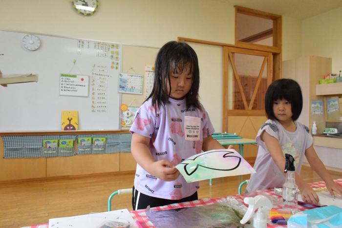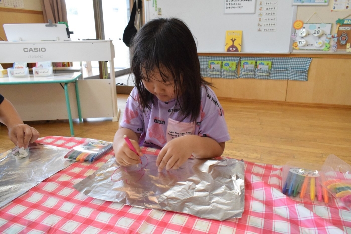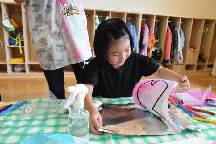 新しい技法を先生に教えてもらったさくらさん。見本を見て早くやりたくて(*^-^*) この作品はお部屋の壁面飾りになりました。