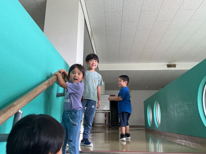 小さな金魚にくぎ付け。幼稚園の赤ちゃん金魚とどっちが小さい?