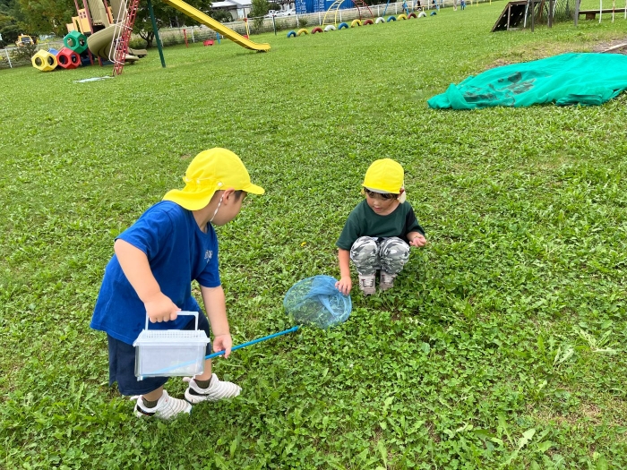 小学校から帰ってからうめさん、ももさんは虫取りや泥んこ遊び、色水遊びで外遊びも満喫しました。