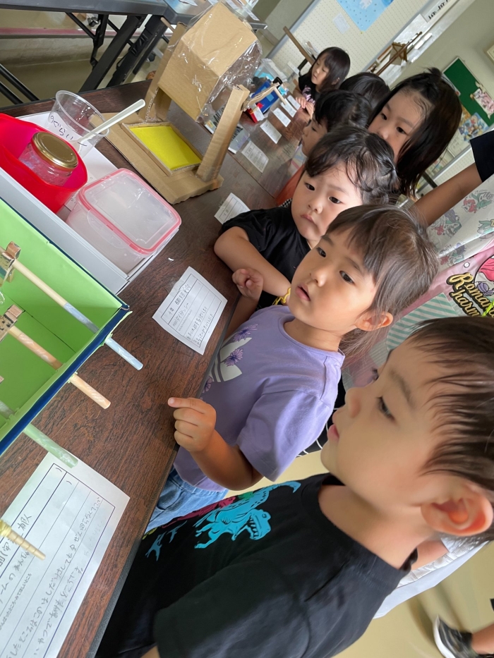 お兄ちゃんやお姉ちゃんが家で作っていた作品を見つけて嬉しそう(*^-^*) 小学生のレベルの高い作品に感心して見入っていました(^^)/