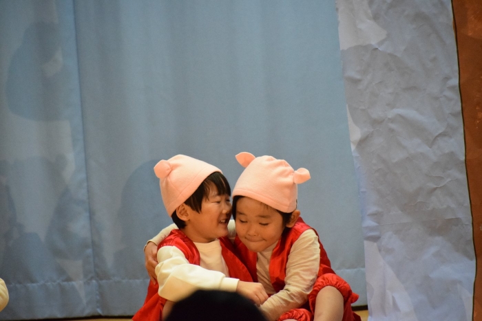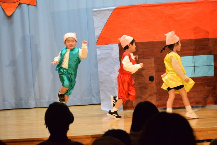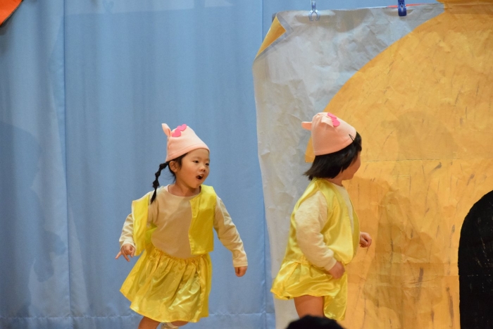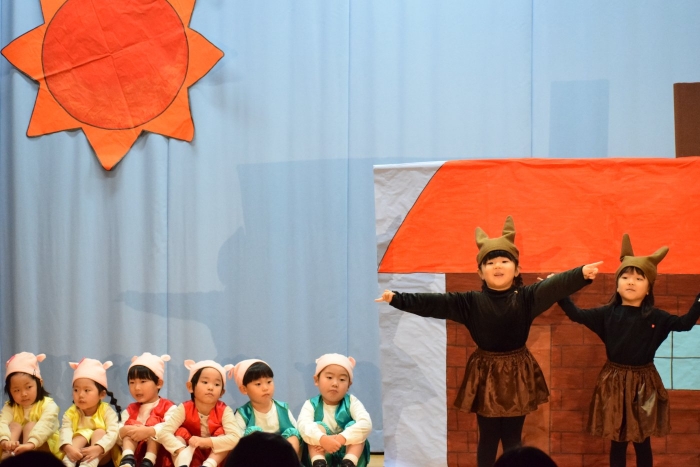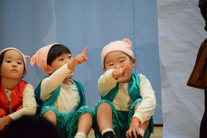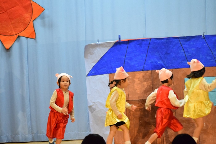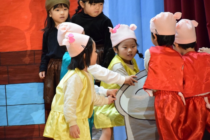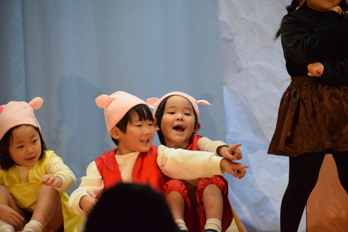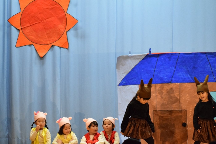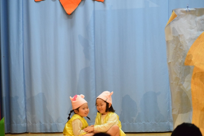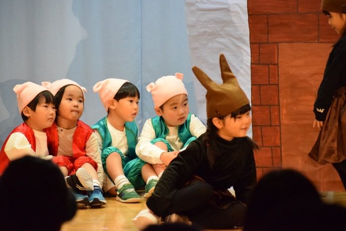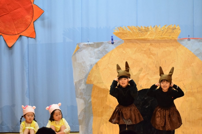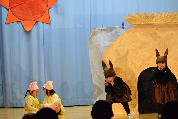 オオカミの迫力に怯えるこぶたたち、お話のあらすじをちゃんと理解して、気持ちが入っていましたね(*^-^*)