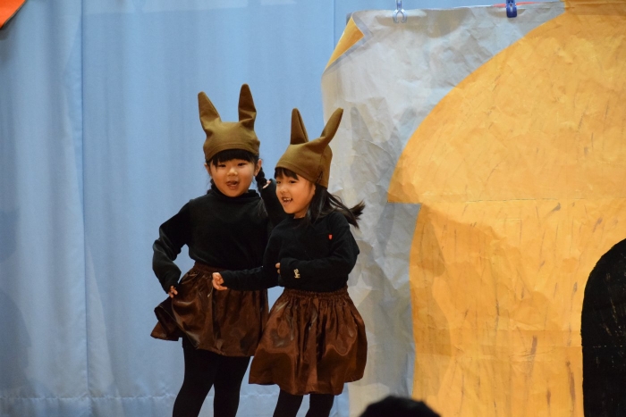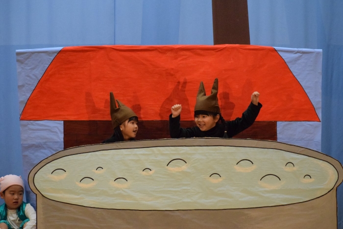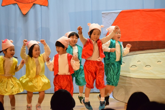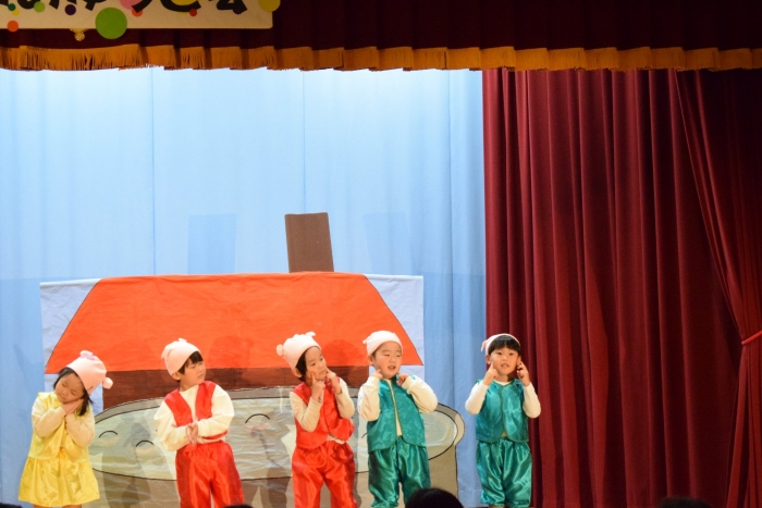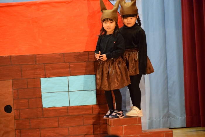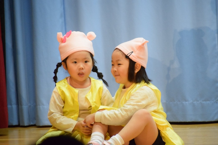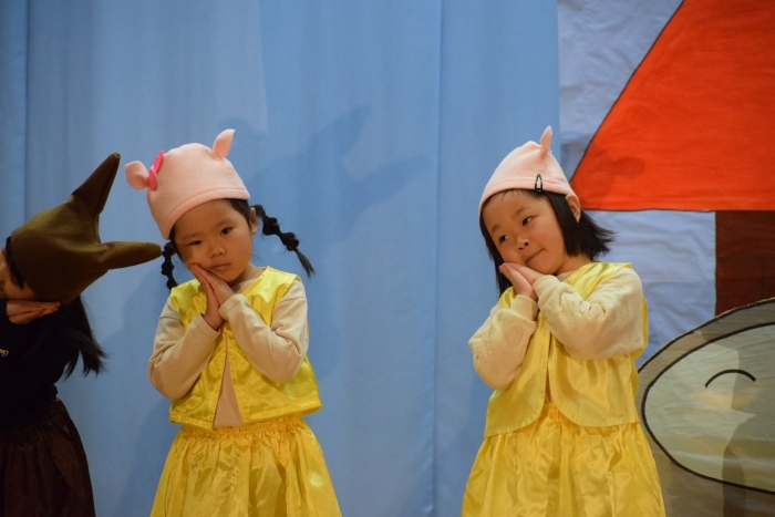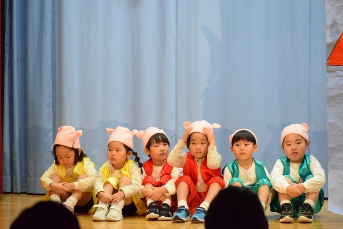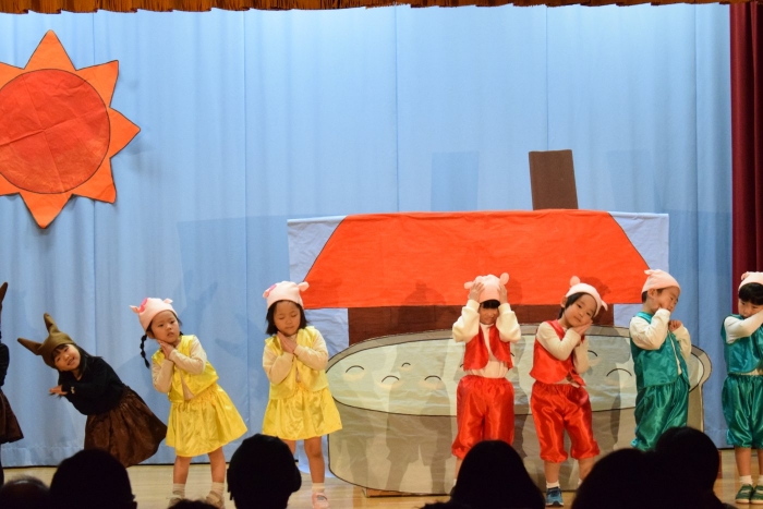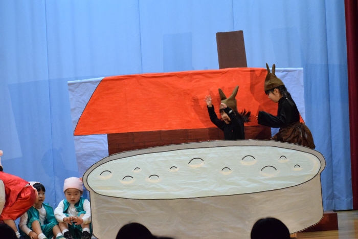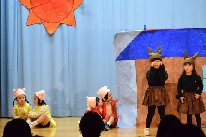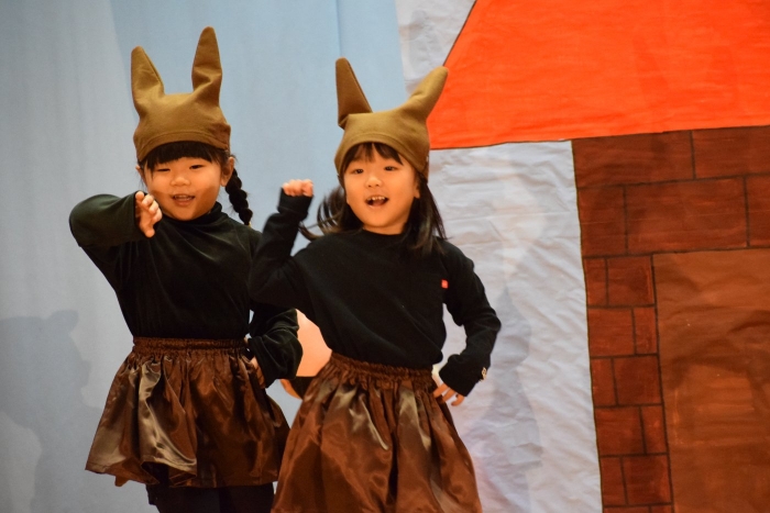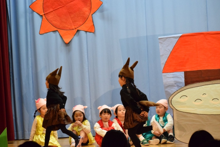 オオカミの迫力に怯えるこぶたたち、お話のあらすじをちゃんと理解して、気持ちが入っていましたね(*^-^*)