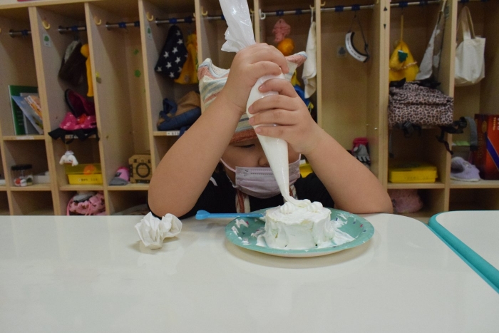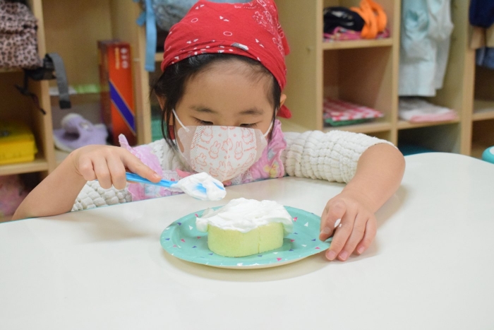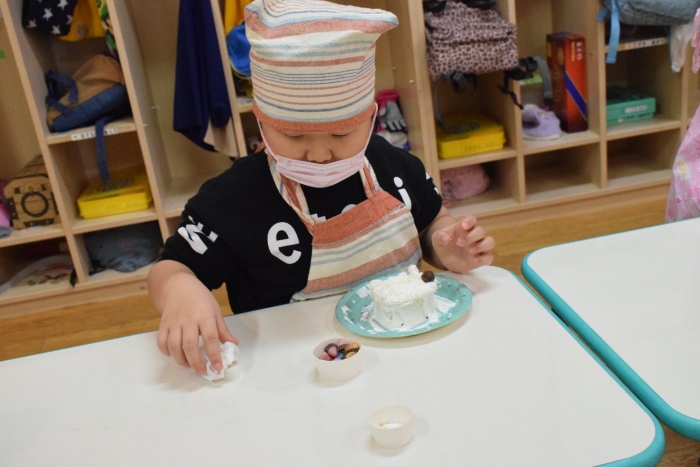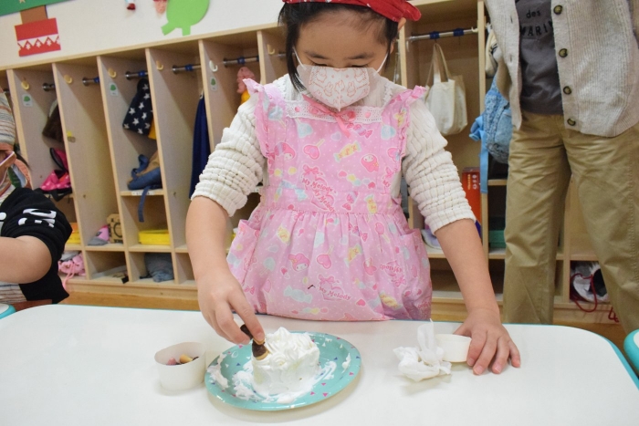 Marucaのパティシエ、A子先生にご指導をいただき、自分だけのオリジナルケーキを作りましたよ!
