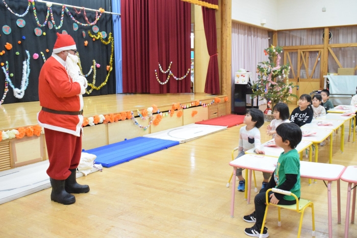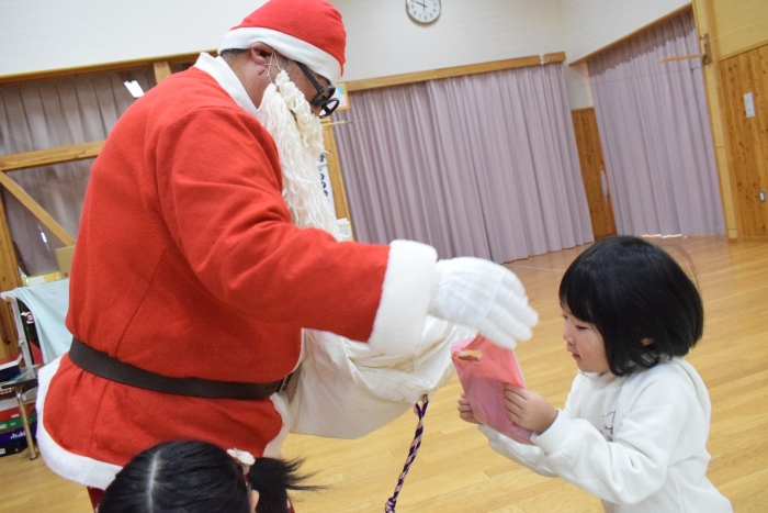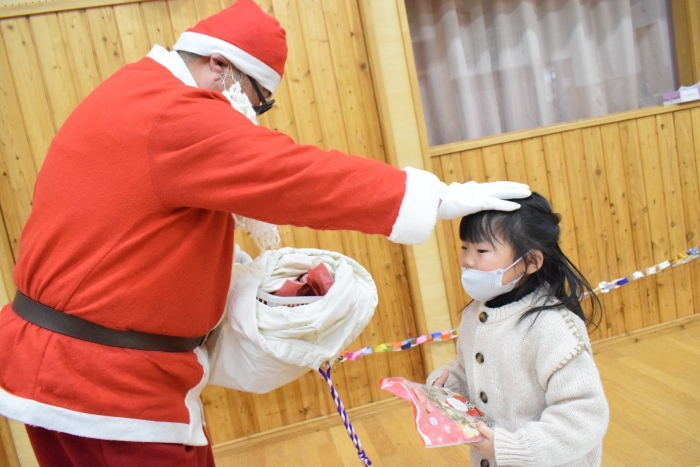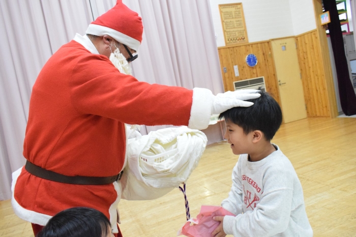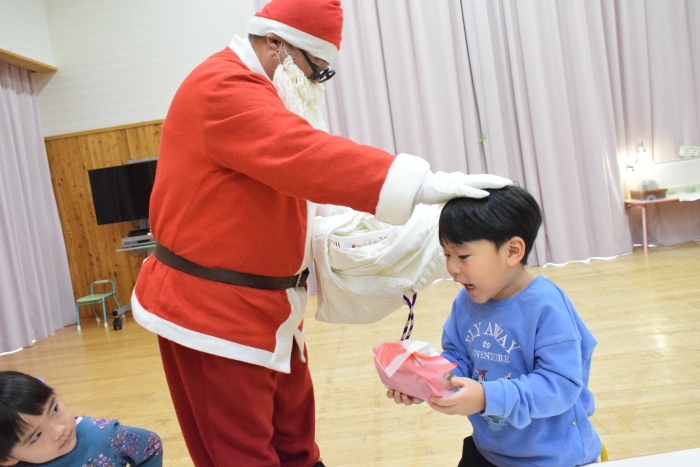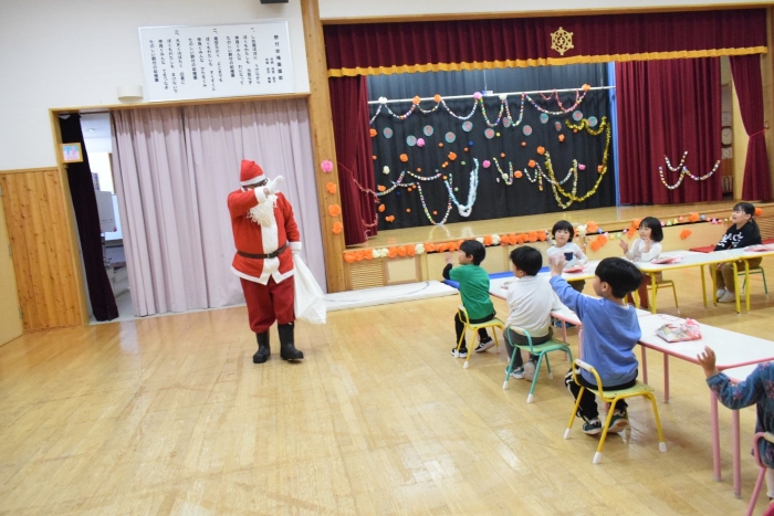 鈴の音と一緒に「メリークリスマス!」と突然サンタさんが登場!
