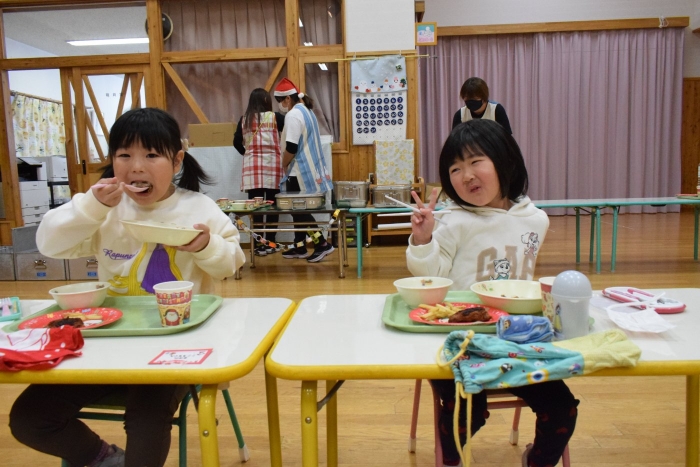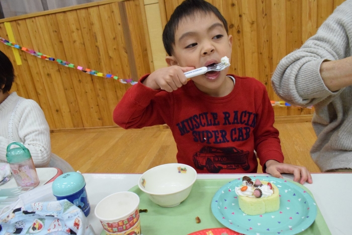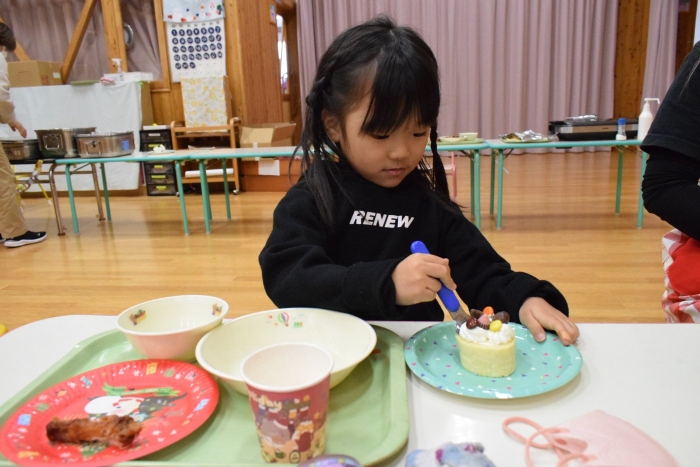待ちに待ったお食事タイム。今日はクリスマスメニューでチキチキボーンやフライドポテト、ジュースもありましたよ! パティシエさんが作ってくれたケーキはお替りが欲しいというほどおいしかったです(*^-^*)