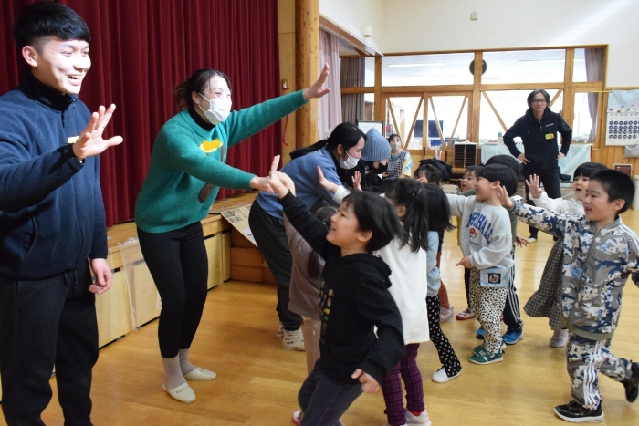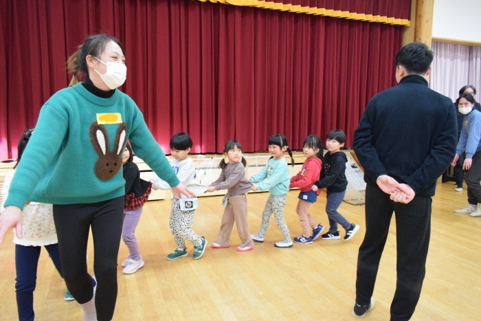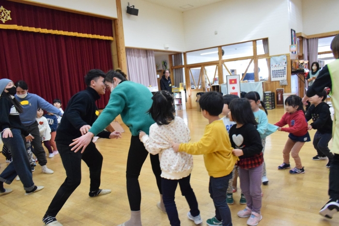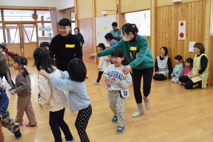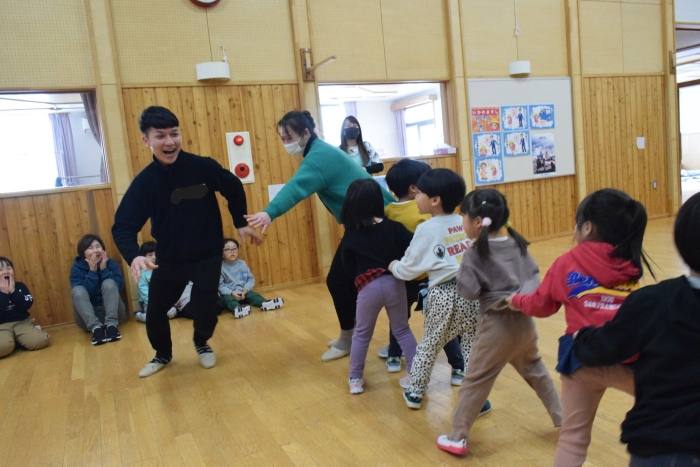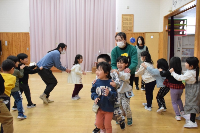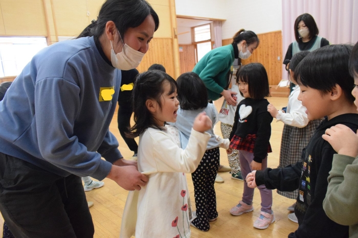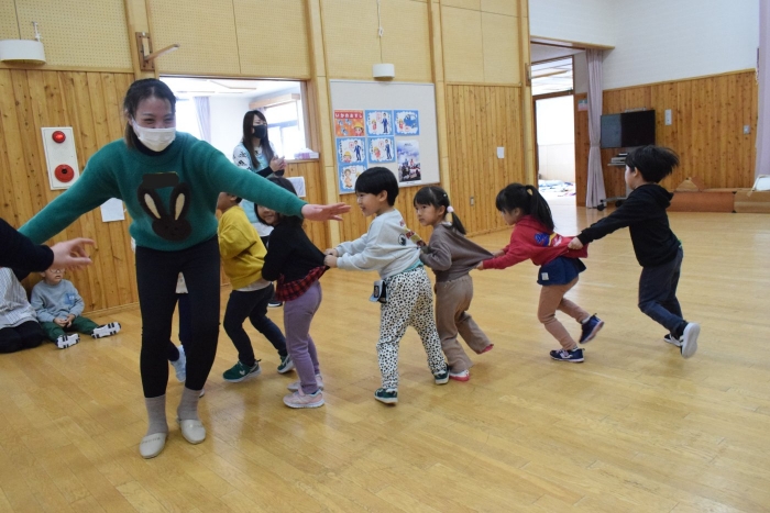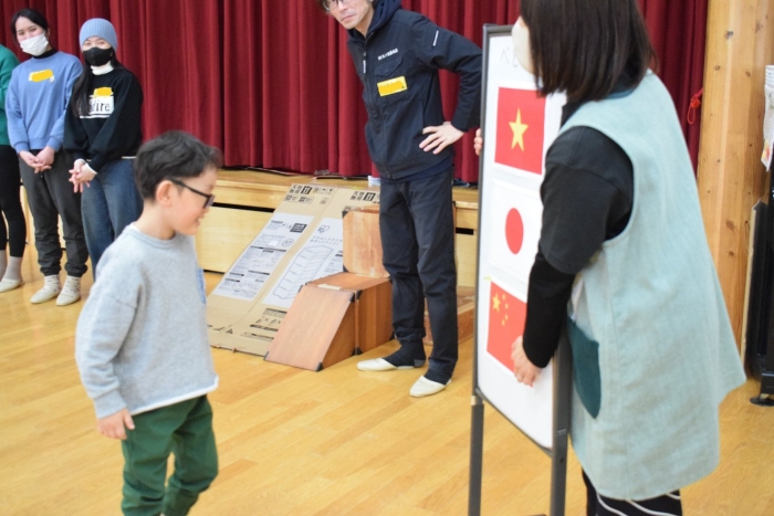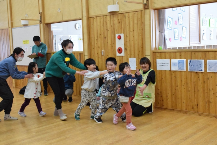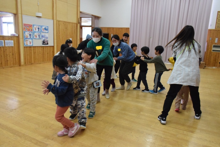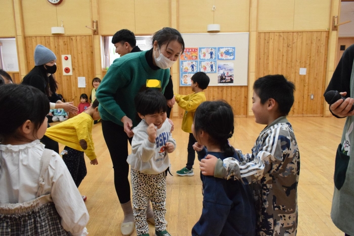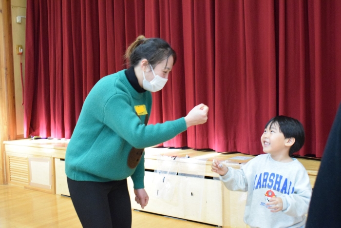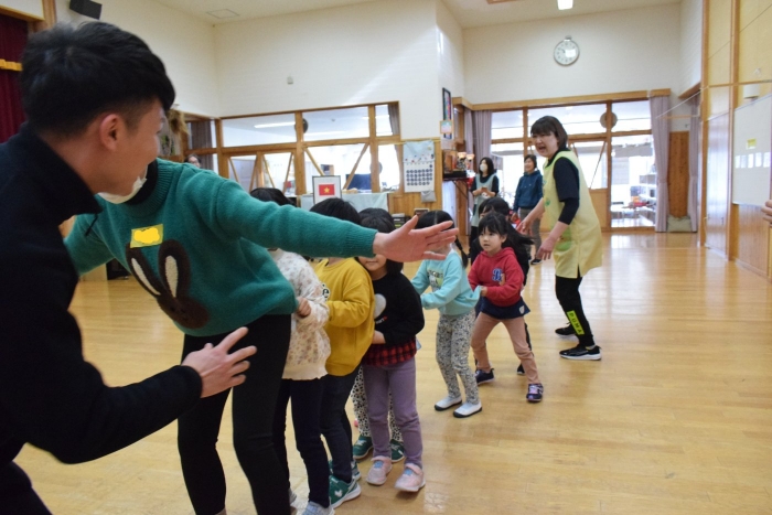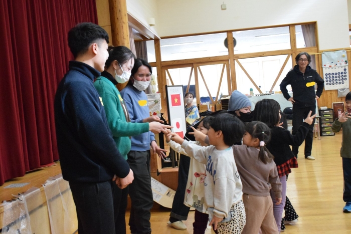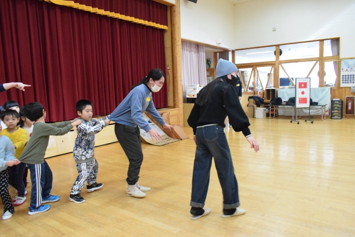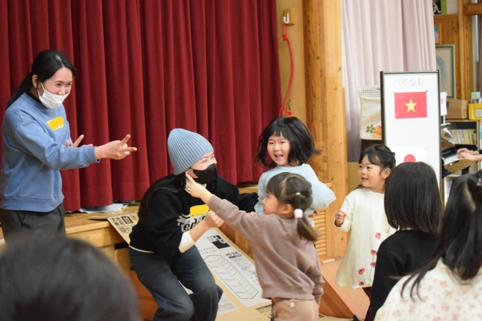 尾岱沼には働きに来ているベトナムの方が200人ぐらいは居て、その中で日本の方と結婚して永住する方もいるそうです。そんなにたくさんの方がいるのに園児たちとはあまり関わりも無く、接触する機会もなかったのでもったいない!との思いから、マルイ佐藤海産さんのご協力の下、今回その機会を設けていただきました。世界にはいろいろな国があること、いろいろな言葉があること、いろいろな文化があること・・・を、幼児期に漠然とでも感じられたらいいなと思っています。
